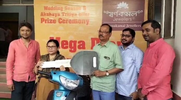 বুধবার স্বর্ণকমল জুয়েলার্সের ২২ বছর পূর্তি উপলক্ষ্যে আগরতলা প্রেস ক্লাবে আয়োজিত হয় এক অনুষ্ঠানের। এদিন এই অনুষ্ঠানের মধ্য দিয়ে রাজ্যবাসীকে শুভেচ্ছা জানান স্বর্ণকমল জুয়েলার্স কর্তৃপক্ষ। পাশাপাশি এই দিন আগরতলা প্রেস ক্লাবে বিবাহ বন্ধন ও অক্ষয় তৃতীয়ার মেগা লাকি ড্র বিজয়ীদের পুরস্কার বিতরণ করা হয়। বিবাহ বন্ধনে দুটি স্কুটি ও দুটি হীরের আংটি এবং স্বর্ণের অক্ষরে কুড়িটি সোনার কয়েন সহ দুটি সোনা নেকলেস প্রদান করা হয়। এদিন অনুষ্ঠানে উপস্থিত ছিলেন স্বর্ণকমলের কর্ণধার গোপাল চন্দ্র নাগ। এছাড়াও উপস্থিত ছিলেন ডাইরেক্টর জয় নাগ ও দিবাকর নাগ।