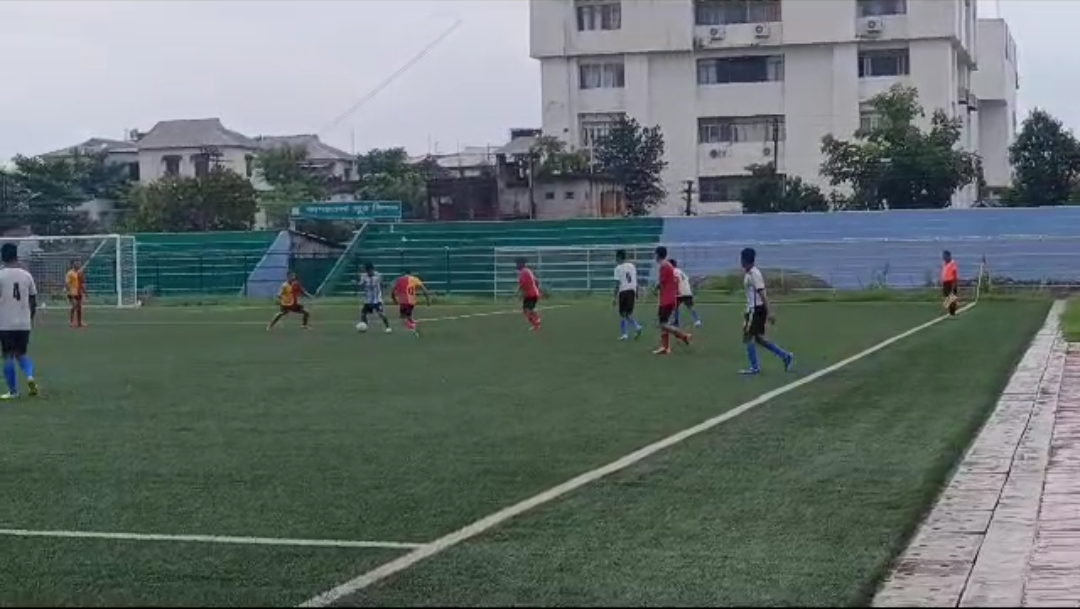 আগরতলা উমাকান্ত মিনি স্টেডিয়ামে চলছে এখন ত্রিপুরা ফুটবল এসোসিয়েশন আয়োজিত ঘরোয়া তৃতীয় ডিভিশন ক্লাব লীগ ফুটবল টুর্নামেন্ট। টুর্নামেন্টের সূচি অনুযায়ী বুধবার সকালে গ্রুপ লিগে নিজেদের শেষ ম্যাচ খেলতে নামে অপরাজয় থাকা স্কাইলার্ক ক্লাব। টানা তিন ম্যাচে জয়ের হ্যাটট্রিক করে জয়ের ধারাবাহিকতা বজায় রাখতে এদিন ইউবিএসটির মুখোমুখি হয় স্কাইলার্ক। নির্ধারিত সময়ের লড়াইয়ে এদিন প্রতিপক্ষের চ্যালেঞ্জের সম্মুখীন হলেও শেষ পর্যন্ত জয় ছিনিয়ে নিয়েই মাঠ ছাড়ল স্কাইলারক ক্লাবের ফুটবলাররা। দিনের ম্যাচে স্কাইলারক ২-১ গোলের ব্যবধানে পরাজিত করে ইউ বিএসটিকে। প্রথমার্ধের খেলায় জয়ী দল সুলেমান রিয়াং এর দেওয়া গোলে এগিয়ে থাকার পর দ্বিতীয়ার্ধে উভয় দল আরও একটি করে গোল করতে সক্ষম হয়। দ্বিতীয়ার্ধে জয়ী দলের পক্ষে এলসন ডারলং এবং পরাজিত ইউবিএসটির পক্ষে একমাত্র গোলটি করে বিশাল সেন। ম্যাচ থেকে জয় ছিনিয়ে নিয়ে গ্রুপ চ্যাম্পিয়ন হয়ে এখন পরবর্তী রাউন্ডের লড়াইয়ে নামবে স্কাইলার্ক। দিনের ম্যাচটি পরিচালনা করেন রেফারি সুকান্ত দত্ত।