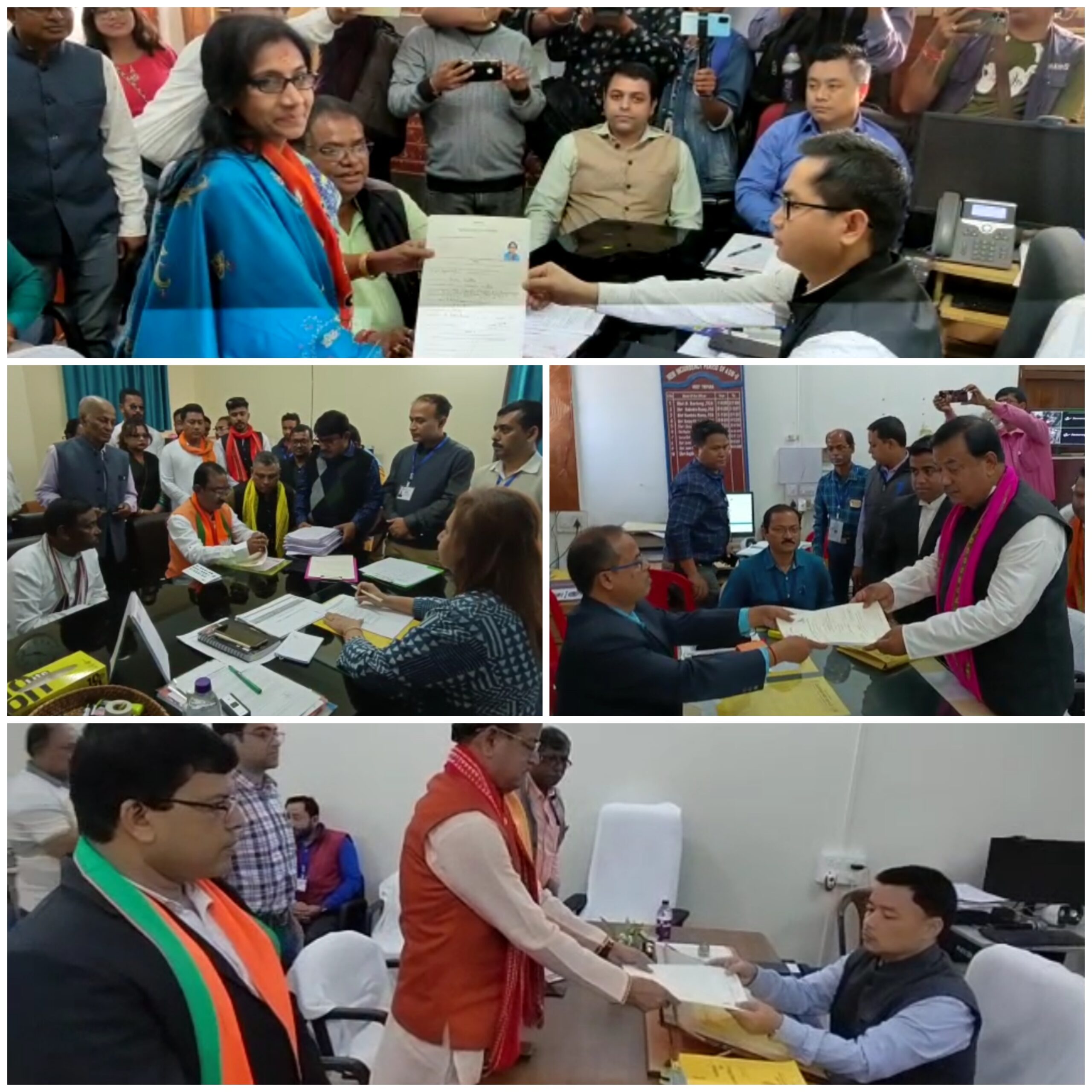 সারা রাজ্যের সাথে সঙ্গতি রেখে মনোনয়ন পত্র জমা দিলেন রাজ্যের গুরুত্বপূর্ণ কয়েকটি বিধানসভা কেন্দ্রের বিজেপি মনোনীত প্রার্থীরা l তারা হলেন, নয় বনমালীপুর মন্ডল থেকে বিজেপির প্রার্থী রাজীব ভট্টাচার্য ও ১৮ সূর্যমনি নগর কেন্দ্রের বিজেপি প্রার্থী রামপ্রসাদ পাল, 2 মোহনপুর কেন্দ্রের রতন লাল নাথ , ৬ আগরতলা কেন্দ্রের বিজেপি প্রার্থী পাপিয়া দত্ত ও বড় জলা কেন্দ্রের বিজেপি প্রার্থী ডাঃ দিলীপ দাস। আসন্ন রাজ্য বিধানসভা নির্বাচনে সোমবার মনোনয়ন পত্র জমা দেওয়ার শেষ দিন ছিল l এদিন সকলে কেন্দ্রের বিজেপি দলের প্রার্থীদের সঙ্গে মনোনয়ন পত্র জমা দিলেন নয় বনমালীপুর মন্ডল থেকে বিজেপির প্রার্থী রাজীব ভট্টাচার্য ও ১৮ সূর্যমনি নগর কেন্দ্রের বিজেপি প্রার্থী রামপ্রসাদ পাল, 2 মোহনপুর কেন্দ্রের রতন লাল নাথ , ৬ আগরতলা কেন্দ্রের বিজেপি প্রার্থী পাপিয়া দত্ত ও বড় জলা কেন্দ্রের বিজেপি প্রার্থী ডাঃ দিলীপ দাস l বিজেপির প্রার্থী রাজীব ভট্টাচার্য নমিনেশন পত্র প্রদান করেন শ্রম ভবনে রিটার্নিং অফিসার এর নিকট l এদিকে ১৮ সূর্যমনি নগর কেন্দ্রের বিজেপি প্রার্থী রামপ্রসাদ পাল জেলা শাসক অফিস এর অতিরিক্ত জেলা শাসকের নিকট মনোনয়ন জমা দেন প্রদান করেন l মিছিল করে গিয়ে তারা মনোনয়ন পত্র জমা দেয় l এদিন সকল প্রার্থীরাই উৎসব এর মেজাজে গিয়ে মনোনয়ন পত্র জমা দেয় l মনোনয়ন জমা দিয়ে এসে সকলেই উন্নয়ন এর নিরিখে বিজেপি দলকে ভোট দিয়ে জয় যুক্ত করার আহবান জানান l সকলেই জয় সম্পর্কিত বিষয়ে ধীর বিশ্বাস ব্যক্ত করেন l রাজ্যে উন্নয়ন এর জোয়ার যে বইছে টা সকল প্রার্থীরাই ব্যক্ত করেন l এখন দেখার ভোট বক্সে কি রায় দেয় গন দেবতারা l