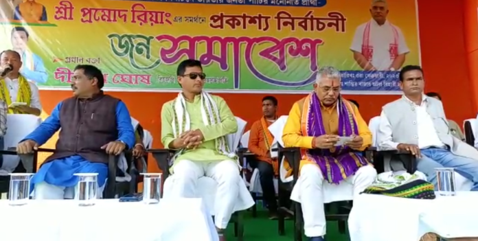 হাতেগুনা আর কিছুদিনপর অনুষ্ঠীতহতেযাচ্ছে বিধাসভা নির্বাচন। আসন্ন বিধানসভা নির্বাচনকে কেন্দ্রকরে প্রচারকাজ চালিয়েযাচ্ছে বিজেপি সমর্থীত কর্মীরা। এরইমধ্যে ৩৬ শান্তির বাজার বিধানসভাকেন্দ্রে বিজেপি মনোনিত প্রার্থীকে বিপুল ভোটে জয়যুক্তকরার লক্ষ্যে শান্তির বাজার সমর চৌধুরী স্মৃতি মার্কেটে অনুষ্ঠীত করাহয় নির্বাচনী জনসমাবেশ। আজকের এই জনসমাবেশে উপস্থিতছিলেন পশ্চিম বাংলার বিজেপির প্রাক্তন রাজ্যসভাপতি দিলীপ ঘোষ। প্রধানবক্তার পাশাপাশি উপস্থিত ছিলেন ৩৬ শান্তির বাজার বিধানসভাকেন্দ্রের বিজেপি মনোনিত প্রার্থী প্রমোদ রিয়াং, ৩৬ শান্তির বাজার বিজেপির মন্ডল সভাপতি শ্যামলাল দেবনাথ সহ বিজেপির অন্যান্য নেতৃত্ববৃন্দরা। আজকের জনসমাবেশে বক্তব্যরাখতেগিয়ে প্রধানবক্তা দিলীপ ঘোষ ত্রিপুরার রাজ্য সরকার ও শান্তির বাজার বিধানসভা কেন্দ্রের বিধায়কের বিভিন্ন উন্নয়নমূলক কর্মসূচীর কথা জনসন্মুখে তুলেধরেন। তিনি বক্তব্যের মাধ্যমে পশ্চিম বাংলায় তৃনমূল কংগ্রেসের বিভিন্ন কাজের সমালোচনাকরেন। দিলীপ ঘোষ জানান যেসকল লোকজন বিজেপি সরকারের উন্নয়নমূলক কাজ দেখেছেন তারা আর কোনো অন্যদলের সরকার চাইবেননা। তাই রাজ্যের উন্নয়নেরধারা বজায় রাখতে শান্তির বাজার বিধানসভাকেন্দ্রে বিজেপি মনোনিত প্রার্থীকে বিপুলভোটে জয়যুক্ত করারবিশেষ আহব্বান জানান।