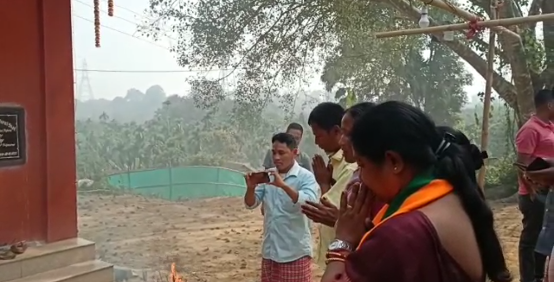 বিজেপি দলের মনোনীত প্রার্থী কল্যাণী সাহা রায় রবিবার নির্বাচনী প্রচারে বেরিয়েই ছনলং পাড়ার বাবা রুপিনি দেবতার মন্দির পরিদর্শন করেন