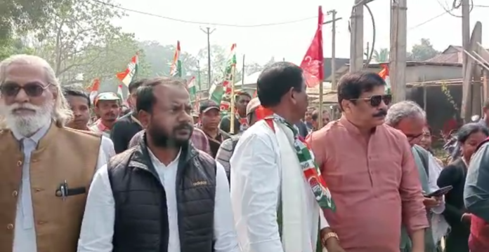 সিপিআইএম ও কংগ্রেস কর্মী সমর্থকদের অংশগ্রহণে এদিন দুপুরে মোহনপুরের তুলাবাগান চৌমুহনী থেকে শুরু হয় মিছিলটি মোহনপুর শহর পরিক্রমা করে মোহনপুর বাজারে গিয়ে শেষ হয়।রাজ্য কংগ্রেস দলের বরিষ্ঠ নেতা সুদীপ রায় বর্মন,সিপিআইএম পার্টি পশ্চিম ত্রিপুরা জেলা কমিটির সম্পাদক রতন দাস,কংগ্রেস প্রার্থী প্রশান্ত সেন চৌধুরী ছিলেন উক্ত মিছিলের নেতৃত্বে।মোহনপুর বাজারে সিপিআইএম ও কংগ্রেস দলের যৌথ এই মিছিলটি শেষে সেখানে অংশগ্রহণ থাকা কর্মী সমর্থকদের উদ্দেশ্যে ভাষন রাখতে গিয়ে সুদীপ রায় বর্মন বলেন তিনি স্বচ্ছতার সাথে রাজনীতি করেন তিনি বলেন কংগ্রেস ছেড়েছি কেন ছেরেছিলাম তা রাজ্যের মানুষ জানে । পদযাত্রায় তোলা স্লোগান নিয়ে তিনি কটাখ্য করে বলেন কিছু মর্খ্য লোক ইনক্লাব স্লোগান এর অর্থ জানে না । ইনক্লাব জিন্দাবত স্লোগান্টা স্বাধীনতা সংগ্রামী কংগ্রেসের দেওয়া । প্রত্যেক স্বাধীনতা সংগ্রামীরা এই স্লোগান তুলেছিলেন। তিনি আরও বলেন জে ওনার থেকে প্রার্থী প্রশান্ত সেন চৌধুরী ভালো কাজ করবেন মহনপুরের হয়ে। ওনাকে সুযোগ দেওয়ার আহ্বান রাখেন সুদীপ রায় বর্মন । সুদীপ রায় বলেন ভুল করেছিলাম আজ প্রায়চিত্ত করতে আসা । এদিনের মিছিলে কর্মী সমর্থকদের উপস্থিতি ছিল চোখে পরার মতো ।