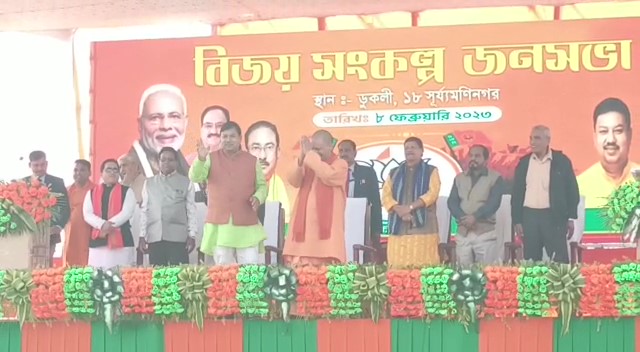 আগামী 16 ফেব্রুয়ারি রাজ্যে বিধানসভা নির্বাচন অনুষ্ঠিত হবে l আর এই নির্বাচনকে সামনে রেখে সূর্যমণি নগর বিধানসভা কেন্দ্রের বিজেপি দলের মনোনীত প্রার্থী রামপ্রসাদ পাল এর সমর্থনে বুধবার ডুকলী মেডা চৌমহনী এলাকায় এক জন সভার আয়োজন করা হয় l জন সভায় স্টার প্রচারক হিসেবে উপস্থিত ছিলেন উত্তর প্রদেশের মুখ্যমন্ত্রী যোগী আদিত্য নাথ l এছাড়াও ছিলেন প্রার্থী রাম প্রসাদ পাল সহ আরো অনেকে l জন সভায় আদিত্য নাথ বলেন, ডাবল ইঞ্জিন সরকারের আমলে রাজ্যে বুলেট ট্রেনের স্পিড এর মত উন্নয়ন এর কাজ হয়েছে l এই উন্নয়ন এর ধারা অব্যাহত রাখুন রাজ্যে l জন সভায় আদিত্য নাথ বলেন, এটা নতুন ভারত l এখানে দুর্নীতি, অরা জগতার কোন জায়গা নেই l হিংসার কোন জায়গা নেই বলে তিনি জানান lএদিন জন সভা স্থল ছিল কানায় কানায় পরিপূর্ণ l দলের কর্মী সমর্থকদের উপস্থিতি ছিল লক্ষনিয়