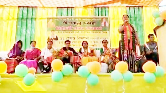 সভায় বক্তব্য রাখতে গিয়ে মহিলা মোর্চার জেলা সম্পাদিকা সরস্বতী দেবনাথ অভিযোগ করেন এই জনসভায় বিভিন্ন স্থান থেকে হাজার হাজার কর্মী সমর্থকদের ভয় ভীতির মাধ্যমে আটকে দিয়েছে মথার লোকজন। প্রচুর সংখ্যক গাড়িকে আসতে দেওয়া হয়নি এই জনসভায়। এই কেন্দ্র থেকে মথা প্রার্থী খুঁজে না পেয়ে এক উগ্রবাদী নেতাকে টিকিট দিয়েছে। যে উগ্রবাদী নেতা রাজ্যের বুকে বহু গণহত্যা সংঘটিত করেছিল। তিনি বলেন বন্দুকের নলের রাজনীতি ত্রিপুরায় আর চলবে না। দলীয় প্রার্থী প্রশান্ত দেববর্মা বলেন বিজেপি একটি সুশৃংখল পার্টি। ২০১৮ সালে তাদের সঙ্গে আইপিএফটি দলের জোট হয়। ২০২৩ বিধানসভা নির্বাচনে দল মোট পাঁচটি আসন আইপিএফটিকে দিয়েছিল। কিন্তু দেখা গেছে রামচন্দ্রঘাট বিজেপি মন্ডলের সভাপতি সঞ্জীব দেববর্মা সর্বভারতীয় এই দলের নিয়ম-নীতি না মেনে নির্দল প্রার্থী হিসেবে এই কেন্দ্র থেকে দাঁড়ায়। তিনি অভিযোগ তুলেন মথার প্রার্থীকে সুবিধে পাইয়ে দিতে তিনি জোট প্রার্থীর ভোট কাঁটতে নির্দলে দাঁড়িয়েছেন।বিজেপি দলকে যারা সম্মান করেন তারা ভোট বাক্সে নির্দল প্রার্থী সঞ্জীব দেববর্মাকে যোগ্য জবাব দেবেন বলে তিনি জানান প্রশান্ত দেববর্মা।