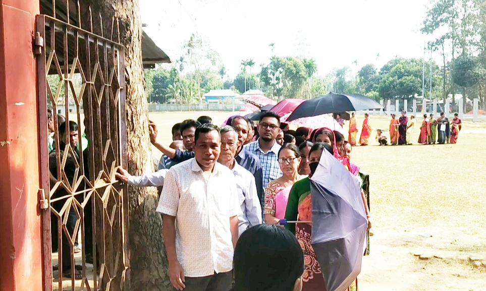 সারা রাজ্যের সাথে খোয়াই মহাকুমার অন্তর্গত তিনটি বিধানসভা কেন্দ্রে 24 রামচন্দ্র ঘাট ২৫ খোয়াই বিধানসভা কেন্দ্র ও ২৬ আশারামবাড়ী বিধানসভা কেন্দ্রে অবাদ ও শান্তিপূর্ণ ভাবে ত্রয়োদশ নির্বাচনের ভোট গ্রহণ পর্ব সু সম্পন্ন হল বৃহস্পতিবার। নির্বাচন কমিশনের নির্ধারিত সময়সূচী অনুসারে বৃহস্পতিবার সকাল সাতটা থেকে শুরু হয়েছে ভোটদান পর্ব দেখা গেছে ভোটদান পর্ব নিয়ে ভোটটারা তাদের মধ্যে একই উত্তেজনা ছিল যে অধিকাংশ ভোট কেন্দ্রে ভোটাররা সূর্য ওঠার আগে থেকেই নাকি ভোটদানের জন্য লাইন দিয়ে দাঁড়িয়ে ছিলেন। যার কারণে খোয়াই মহকুমা এলাকার তিনটি বিধানসভা কেন্দ্রে সকাল দশটা পর্যন্ত ৩১ শতাংশ ভোট পড়েছে। আবার কিছু কিছু ভোটকেন্দ্রে দুপুর দুইটা মধ্যেই প্রায় ৯০-৯৫ শতাংশ ভোট হয়ে গেছে তার মধ্যে উল্লেখযোগ্য হল খোয়াই বিধানসভা কেন্দ্রের অন্তর্গত পূর্বগণকি সিধু কানু অঙ্গনওয়াড়ি কেন্দ্রটি এবং খোয়াই সুভাষ পার্ক স্থিত শৈশব সুনীতি স্কুলের ভোট কেন্দ্র টিও । এও দেখা গেছে অধিকাংশ ভোট কেন্দ্রে গুলিতে ভোটারদের দীর্ঘ লাইন প্রত্যক্ষ করা গেছে। খোয়াই মহকুমার বিভিন্ন ভোট কেন্দ্রগুলিতে প্রখর রোদ্রের মধ্যেও ভোটারদের দীর্ঘ লাইন দিয়ে ভোটদানের জন্য দাঁড়িয়ে থাকতে দেখা গেছে। দুপুর দুইটা পর্যন্ত ভোটারদের যে উপস্থিতি দেখা গেছে তাতে কিছু কিছু ভোটকেন্দ্র ভোট দান পর্ব শেষ হতে রাত্রি আটটা বেজে গেছে। তবে খোয়াই মহকুমার তিনটি বিধানসভা এলাকায় ভোট কেন্দ্রগুলিতে ভোটারদের দীর্ঘ লাইন এবং ধীর গতিতে ভোট প্রক্রিয়ার বিষয়টি সাংবাদিকদের চোখে ধরা পড়েছে। যদিও এ বিষয়ে প্রিসাইডিং অফিসার্স সহ ভোট কর্মীরা সংবাদমাধ্যমের সামনে মুখ খুলতে নারাজ। তথাপি গণদেবতারা তাদের ক্ষোভ আটকে রাখতে পারেননি। শেষে তারা সংবাদ কর্মীদের সামনে প্রখর রৌদ্রে দীর্ঘ সময় লাইনে দাঁড়িয়ে থাকার জন্য নিজেদের ক্ষোভ উগড়ে দেন কারণ অনেক ভোটকেন্দ্র ভোটদান শুরুতেই ইভিএম মেশিন কয়েক ঘন্টার জন্য বিকল হয়ে পড়ে আর তাতেই ভোটদানের কাজ শুরু হতেই বাধাপ্রাপ্ত হয় যার ফলে ভোটারদের দীর্ঘ সময় পর্যন্ত অপেক্ষা করতে হয় ভোট দানের জন্য । খোয়াই মহকুমার ২৪ রামচন্দ্র ঘাট বিধানসভা এলাকার ১ নং বুথ খেংরাবাড়ি ভোটকেন্দ্র পরিদর্শনে দেখা যায় সেখানে ত্রিপরা মথা ছাড়া অন্য কোন দলের পুলিং এজেন্ট নেই। সেই দলের কর্মীরা তাদের মর্জি মাফিক ভোটদান প্রক্রিয়া সম্পন্ন করছে তাতে প্রত্যক্ষ ও পরোক্ষ ভাবে সি আর পি এফ জোয়ানরা মদত জুগিয়ে যাচ্ছে। একই চিত্র লক্ষ্য করা গেছে খোয়াই মহকুমার ২৬ আশারাম বাড়ী বিধানসভা কেন্দ্রেও। ২৫ খোয়াই বিধানসভা কেন্দ্রেও অধিকাংশ বুথে দীর্ঘ লাইন পরিলক্ষিত হয়। ভোট কর্মীদের আশঙ্কা এ প্রক্রিয়া শেষ হতে অধি