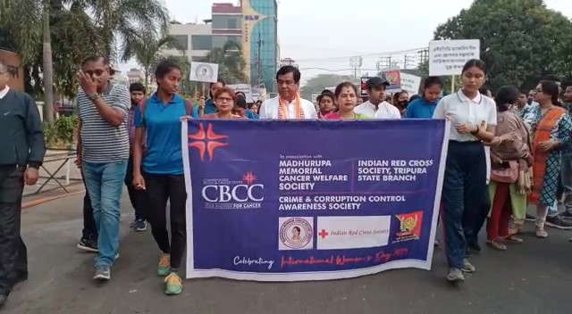 ৮ ই মার্চ ছিল আন্তর্জাতিক নারী দিবস । সেই উপলক্ষে শুক্রবার cbcc রবীন্দ্র ভবন প্রাঙ্গণ থেকে এক রেলির আয়োজন করা হয়। এই রেলিতে উপস্থিত ছিলে cbcc উদ্যোক্তা সহ আগরতলা পৌর নিগমের মেয়র দীপক মজুমদার। মেয়র দীপক মজুমদার জানান সারা বিশ্বের সাথে রাজ্যেও বিভিন্ন কর্মসূচি গ্রহণ করা হয়েছে বিশেষ করে নারীদের অধিকার নারীদের সন্মান রক্ষা ,অর্থনীতি হোক ,রাজনৈতিক হোক আর সামাজিক শান্তির ক্ষেত্রে নারীদের যাতে সমান অধিকার থাকে সেদিকে আমাদের দেশ আমাদের সরকার এবং সারা বিশ্ব বিভিন্ন আন্দোলন করে যাচ্ছে। তারই অঙ্গ হিসাবে আন্তর্জতিক নারী দিবস উপলক্ষে এই রেলি অনুষ্ঠিত হয়।