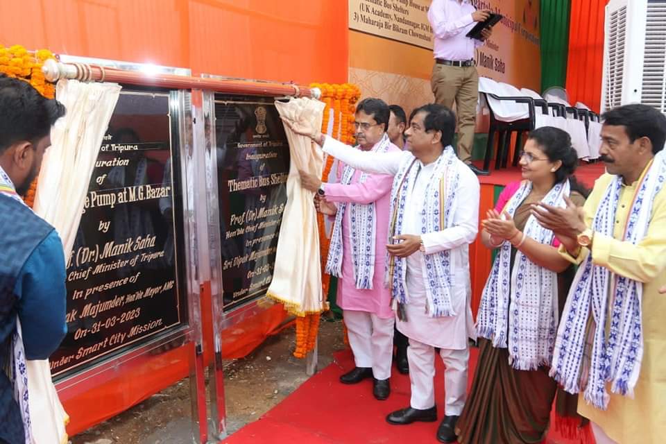 অনুষ্ঠানে আগরতলা পুর নিগমের মেয়র দীপক মজুমদার বলেন, বর্তমান রাজ্য সরকার ক্ষমতায় আসার পর থেকে আগরতলা স্মার্ট সিটি প্রকল্পে আগরতলা শহরকে বিভিন্নভাবে সাজিয়ে তোলার প্রয়াস নেওয়া হয়েছে। নাগরিকদের মৌলিক চাহিদা ও সমস্যা নিরসনে সরকার কাজ করছে। শহরবাসীকে সুস্থ নাগরিক পরিসেবা প্রদান, নিকাশি ব্যবস্থার উন্নয়ন সহ রাস্তা, ড্রেইন সংস্কার করে শহরকে সুন্দরভাবে সাজিয়ে তোলার উদ্যোগ নেওয়া হয়েছে। তিনি বলেন, আগরতলা শহরে বিভিন্ন অব্যবহারযোগ্য পুকুরগুলির সংস্কার করে ব্যবহারযোগ্য করে তোলা হচ্ছে। আগরতলা শহরকে পরিষ্কার পরিচ্ছন্ন, যানজটমুক্ত এবং শহরবাসীকে বৃষ্টির জমে থাকা জল থেকে পরিত্রাণ দিতে আগরতলা পুরনিগম সচেষ্ট। এক্ষেত্রে তিনি শহরবাসীর সহযোগিতা প্রত্যাশা করেন। অনুষ্ঠানে আগরতলা স্মার্টসিটি লিমিটেডের চিফ এক্সিকিউটিব অফিসার ডঃ শৈলেশ কুমার যাদব আগরতলা পুরনিগম এবং আগরতলা স্মার্টসিটির অন্তর্গত যে প্রকল্পগুলির আজ উদ্বোধন হয়েছে সেগুলির বিবরণ তুলে ধরেন। তিনি বলেন, এমবিবি চৌমুহনীর নতুন নামাকরণ প্রকল্প রূপায়নে প্রায় ২০ লক্ষ টাকা ব্যয় হয়েছে। স্মার্টসিটি মিশনে উমাকান্ত একাডেমি, নন্দননগর এবং আইজিএম হাসপাতালের সামনে নির্মিত যাত্রী শেডগুলির জন্য মোট ব্যয় হয়েছে ৯০ লক্ষ টাকা। ১ কোটি ৬৯ লক্ষ টাকায় জল নিষ্কাশনের জন্য মহারাজগঞ্জ বাজারে ফ্লাড ড্রেইনেজ পাম্প হাউজ বসানো হয়েছে। তিনি বলেন আগরতলা শহরে ১৬টি পাম্প ছিল এটি ১৭তম। তিনি জানান, আগরতলা পুরনিগম এবং স্মার্টসিটি মিশনের অন্তর্গত বিভিন্ন প্রকল্প রূপায়নে ত্রিপুরা সারা দেশে প্রশংসিত হয়েছে। এছাড়া অনুষ্ঠানে আগরতলা পুরনিগমের ডেপুটি মেয়র মনিকা দাস দত্ত, আগরতলা পুরনিগমের অতিরিক্ত মিউনিসিপাল কমিশনার মোঃ সাজ্জাদ, সমাজসেবী সঞ্জয় সাহা প্রমুখ উপস্থিত ছিলেন।