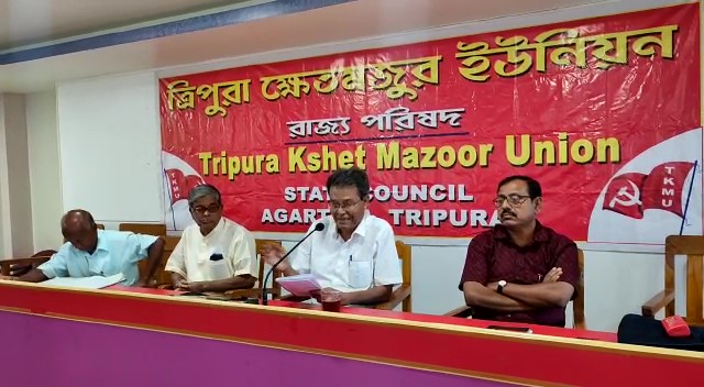 ত্রিপুরা ক্ষেতমজুর ইউনিয়ন রাজ্য পরিষদের উদ্যোগে ছাত্র যুব ভবনে রবিবার এক আলোচনা সভা অনুষ্ঠিত হয়। উপস্থিত ছিলেন সংগঠনের নেতা তথা প্রাক্তন মন্ত্রী ভানুলাল সাহা, সংগঠনের রাজ্য সম্পাদক শ্যামল দে সহ অন্যান্যরা। সংগঠনের নেতা ভানুলাল সাহা জানান গত ফেব্রুয়ারি মাসে হাওড়াতে ক্ষেতমজুর ইউনিয়নের জাতীয় সম্মেলন অনুষ্ঠিত হয়। সম্মেলনের রিপোর্টিং রবিবার কর্মীদের কাছে তুলে ধরা হয়। এবং এই রিপোর্টিং এর মধ্যে রয়েছে গরিব মানুষদের বর্তমান কঠিন পরিস্থিতি থেকে উত্তরণ করার জন্য আগামী দিনে কিভাবে সংগ্রাম গড়ে তোলা হবে, সেই বিষয়ে। তিনি আরো বলেন গত বিধানসভা নির্বাচনে রাজ্যের মানুষ সিপিআইএমকে ভোট দিয়েছে বলে বর্তমান সরকার রেগা কাজ শ্রমিকদের দিচ্ছে না। সরকারের এই নীতির বিরুদ্ধে লড়াই করে কাজ আদায় করা হবে বলে জানান ভানু লাল সাহা। তিনি আরো বলেন, সর্বভারতীয় সম্মেলনে যে সিদ্ধান্তগুলি গ্রহণ করা হয়েছে সেই সময় উপযোগী সিদ্ধান্ত। এগুলি বাস্তবায়ন করতে রাজ্য ক্ষেতমজুর ইউনিয়ন বদ্ধপরিকর বলে জানান তিনি।