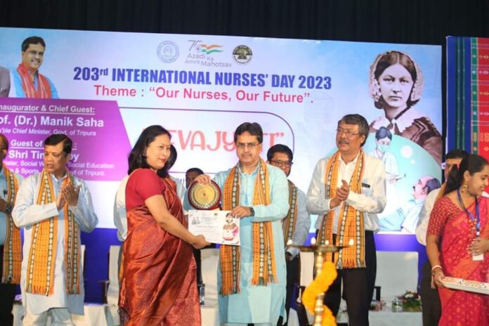 চিকিৎসা প্রদানের সময় নার্সদের অবশ্যই সদয় মনোভাব থাকতে হবে। চিকিৎসা দেওয়ার সময় তাদের অনেক ধৈর্য্য বহন করতে হবে। একজন মা যেমন পুরো পরিবারকে নিয়ন্ত্রণ করেন, তেমনি রোগীদের চিকিৎসা দেওয়ার ক্ষেত্রে নার্সরাও হাসপাতাল নিয়ন্ত্রণ করেন। তাই, প্রতিটি নার্সকে অবশ্যই সামাজিক কর্তব্যবোধের সাথে তাদের দায়িত্ব পালন করতে হবে, মুখ্যমন্ত্রী অধ্যাপক (ড.) মানিক সাহা আজ রবীন্দ্র ভবনে আয়োজিত আন্তর্জাতিক নার্সেস দিবসের অনুষ্ঠানের উদ্বোধন করার পর মুখ্যমন্ত্রীর প্রতিকৃতিতে পুষ্পস্তবক অর্পণ করেন। আধুনিক নার্সিং এর প্রতিষ্ঠাতা, ফ্লোরেন্স নাইটিংগেল। এ বছরের থিম: “আমাদের নার্স, আমাদের ভবিষ্যত।” মুখ্যমন্ত্রী বলেন, অস্ত্রোপচারের সময় বা হাসপাতালে স্বাস্থ্য পরিষেবা দেওয়ার সময় ডাক্তাররা নার্সদের উপর নির্ভর করে। নার্সদের ‘নার্স’ বলা হয় কারণ তারা মানবতার সেবায় ঝুঁকে পড়ে। তারা রোগীদের স্বাস্থ্যসেবা প্রদানে বিশাল ভূমিকা পালন করে। রাজ্য সরকার তাদের পরিষেবার জন্য তাদের যথাযথ সম্মান দেওয়ার প্রতিও আন্তরিক। মুখ্যমন্ত্রী বলেন, রাজ্যের বিভিন্ন নার্সিং ইনস্টিটিউটে নার্সিং কাউন্সিলের নির্দেশিকা অনুসরণ করা গুরুত্বপূর্ণ। তিনি বলেন, রাজ্যের তরুণ ছেলে-মেয়েরা রাজ্যেই এএনএম, জিএনএম ইত্যাদি পড়ার সুযোগ পাচ্ছে। আগে এই কোর্সগুলি রাজ্যের বাইরে থেকে করতে হত। মুখ্যমন্ত্রী নার্সিং শিক্ষার্থীদের ফ্লোরেন্স নাইটিঙ্গেলের পদাঙ্ক অনুসরণ করার আহ্বান জানান যারা নার্সিং পরিষেবা প্রদানের ক্ষেত্রে মানবিক মানদণ্ড স্থাপন করেছিলেন। সমাজকল্যাণ ও সমাজসেবা মন্ত্রী টিঙ্কু রায় বলেছেন, কোভিড-১৯ প্রাদুর্ভাবের সময় নার্সরা অক্লান্ত ও আন্তরিকতার সাথে তাদের দায়িত্ব পালন করেছেন। বর্তমান সময়ের সঙ্গে তাল মিলিয়ে বিভিন্ন বিষয়ে প্রশিক্ষণ দেওয়া জরুরি। তাতে রাজ্যের মানুষ উপকৃত হবে। স্বাগত বক্তব্যে ত্রিপুরা স্বাস্থ্য পরিষেবার পরিচালক ডাঃ শুভাশীষ দেববর্মা বলেন, আজ সারা দেশে ফ্লোরেন্স নাইটিঙ্গেলের জন্মবার্ষিকী উপলক্ষে আন্তর্জাতিক নার্স দিবস পালিত হচ্ছে। তিনি বলেন, স্বাস্থ্যসেবা দিতে বিভিন্ন মেডিকেল ইনস্টিটিউটে মোট ২১৩০ জন নার্স নিয়োগ করা হয়েছে। তারা তাদের দায়িত্ব পালনে আন্তরিকতার সাথে কাজ করে যাচ্ছেন। তাদের সেবাকে সম্মান দিতে এখন থেকে স্টাফ নার্সদের নার্সিং অফিসার বলা হবে। এর পাশাপাশি সরকার অন্যান্য নার্সদের সম্মান প্রদানে আন্তরিক প্রচেষ্টা গ্রহণ করেছে সেখানে উপস্থিত ছিলেন স্বাস্থ্য বিভাগের সচিব ডাঃ দেবাশীষ বসু, স্বাস্থ্য শিক্ষা পরিচালক অধ্যাপক (ডাঃ) হর প্রসাদ শর্মা, স্বাস্থ্য ও পরিবার কল্যাণ বিভাগের পরিচালক ডাঃ সুপ্রিয়া মল্লিক এবং ত্রিপুরা নার্সিং 