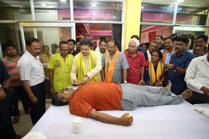 রবিবার রাজধানী আগরতলার কলেজটিলা স্থিত বিবেকানন্দ সংঘ ক্লাবের উদ্যোগে এক স্বেচ্ছায় রক্তদান শিবিরের আয়োজন করা হয়। এদিনের অনুষ্ঠানে প্রধান অতিথি হিসেবে উপস্থিত থেকে অনুষ্ঠানের শুভ সূচনা করেন রাজ্যের মুখ্যমন্ত্রী অধ্যাপক ডাক্তার মানিক সাহা, উপস্থিত ছিলেন প্রদেশ বিজেপি সভাপতি তথা বিশিষ্ট সমাজসেবক রাজীব ভট্টাচার্য এবং আগরতলা পুর নিগমের ২৪ নং ওয়ার্ড ও ৩১ নং ওয়ার্ডের কর্পোরেটর সুখময় সাহা ও অঞ্জনা দাস। এদিন মুখ্যমন্ত্রী বক্তব্য রাখতে গিয়ে বলেন রাজ্য বিধানসভা নির্বাচনের সময় রাজ্যের ব্লাড ব্যাংক গুলিতে রক্তস্বল্পতা দেখা দিয়েছিল যার দরুন তিনি সমাজের সকল অংশের মানুষের কাছে আহবান রেখেছিলেন সবাই যেন রক্তদানে এগিয়ে আসে সেই আবেদনে সাড়া দিয়ে রাজ্যের বিভিন্ন সংস্থা সংগঠন রক্তদানের মতো মহৎ কর্মসূচি পালন করে চলেছে যার ফলে রাজ্যের প্রায় দুই হাজার ইউনিট রক্ত যোগান হয়েছে। পাশাপাশি তিনি বলেন রাজ্যের প্রায় ১৪ টি ব্লাড ব্যাংক রয়েছে যার মধ্যে বারোটি সরকারি ও দুটি বেসরকারি, রক্ত আনলেই হবে না সংরক্ষণ করতে হবে যার জন্য রাজ্যে সাতটি রক্ত সংরক্ষণাগার রয়েছে, তিনি বলেন মানববন্ধন তৈরি করার ক্ষেত্রে একমাত্র মূল চাবিকাঠি হল রক্তদান তাই রক্তদান কে মহৎ দান হিসাবে বিবেচ্য করা হয় বলে জানান তিনি। তাছাড়া উদ্যোক্তা ক্লাব নিয়ে বলতে গিয়ে তিনি জানান ক্লাব হল একটি মিনি গভমেন্ট কেননা সেখানে এলাকার বিভিন্ন সমস্যা সমাধান করা হয়। সমাজের অগ্রগতি ক্ষেত্রে ক্লাব একটি গুরুত্বপূর্ণ ভূমিকা পালন করে বলে মন্তব্য করেন তিনি। তার পাশাপাশি এদিন উদ্যোক্তা ক্লাব ও রক্তদানে এগিয়ে আসা রক্তদাতাদের অভিনন্দন জানান। এ দিনের অনুষ্ঠানে রক্ত দাদাদের মধ্যে উৎসাহ ছিল লক্ষণীয়।