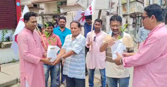 বিশ্ব পরিবেশ দিবস উদযাপন উপলক্ষে পথচারীদের মধ্যে চারা গাছ বিতরণ করল সিপিআইএমের যুব সংগঠন ডি ওয়াই এফ আই। এই উপলক্ষে সোমবার মূল অনুষ্ঠানটি অনুষ্ঠিত হয় আগরতলার সিটি সেন্টারের সামনে ।এই কর্মসূচিতে উপস্থিত ছিলেন, ভারতের গণতান্ত্রিক যুব ফেডারেশনের রাজ্য সভাপতি পলাশ ভৌমিক এবং রাজ্য সম্পাদক নবারুণ দে ।এদিন রাজ্যের বিভিন্ন প্রান্তেও এই ধরনের চারা গাছ বিতরণের কর্মসূচির আয়োজন করেছে ডিওয়াইএফআই। এদিনের কর্মসূচির মূল বিষয়বস্তু সম্পর্কে বলতে গিয়ে ডিওয়াইএফআই রাজ্য সভাপতি জানান আইএলও তথ্য অনুযায়ী এই বিশ্ব উষ্ণায়ন পরিবর্তনের ফলে শুধু ভারতবর্ষে ৩ কোটি ৪০ লক্ষ মানুষ কাজ হারাবেন এই জায়গায় দাঁড়িয়ে ডি ওয়াই এফ আই মনে করছে যে এই মুহূর্তে এই লড়াইয়ে শামিল হওয়া উচিত তাই বিশ্ব পরিবেশ দিবস উপলক্ষে সাধারণ জনগণের মাঝে এই চারা বিতরণ কর্মসূচি বলে।