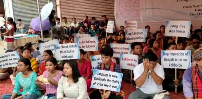 রোমান স্ক্রিপ্টে ককবরক ভাষা চালু করার দাবিতে রাজধানীতে বুধবার গণঅবস্থান সংঘটিত করলো রোমান স্ক্রিপ্ট ফর ককবরক চৌবা নামে একটি সংগঠন। ৫৬ টি অঙ্গ সংগঠন মিলে গঠিত এই রোমান স্ক্রিপ্ট ফর ককবরক চৌবা বিবেকানন্দ ময়দানের সামনে গণ অবস্থান সংঘটিত করে। গণ অবস্থান থেকে অবিলম্বে রোমান স্ক্রিপ্টে ককবরক চালুর দাবি জানানো হয়। অন্যথায় সংঘটন আগামী দিনে বৃহত্তর গণআন্দোলনে যাবে। এদিন রোমান স্ক্রিপ্ট ফর ককবরক চৌবার চেয়ারম্যান বিকাশ রায় দেববর্মা এই হুশিয়ারি দেন।
