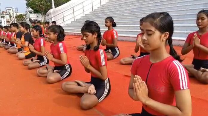 বিশ্ব যোগা দিবস কে সামনে রেখে এক যোগার ডেমোস্টেশন এর আয়োজন যুব বিষয়ক ও ক্রীড়া দপ্তরের