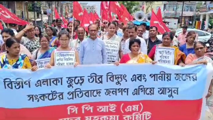 আগরতলা পৌর নিগমের অন্তর্গত বিভিন্ন এলাকায় রয়েছে পানীয় জলের সমস্যা। জল নিষ্কাশন ব্যবস্থাও খুবই করুন। এছাড়াও রয়েছে বিদ্যুৎ রাস্তাঘাট সহ আরো বহুবিধ সমস্যা। শহর আগরতলা এখন নামে স্মার্ট সিটি হলেও কাজের দিক দিয়ে স্মার্ট সিটি নেই। স্মার্ট সিটি হল প্রচারে। এমনই অভিযোগ এনে এবার রাস্তায় নামল বিরোধী দল সিপিআইএমের নেতাকর্মীরা। সোমবার আগরতলায় শহরবাসীর বিভিন্ন দাবিকে সামনে রেখে সিপিআইএম পশ্চিম জেলা কমিটির উদ্যোগে অনুষ্ঠিত হয় এক বিক্ষোভ মিছিল। বিক্ষোভ মিছিল থেকে এদিন দাবি সনদ সম্বলিত স্মারকলিপি আগরতলা পৌর নিগমের মেয়রের কাছে প্রদান করার কথা থাকলেও, মেয়র অন্য কাজে ব্যস্ত থাকায় ডেপুটেশন প্রদান করা সম্ভব হয়নি। তাই পূর্বসূচি অনুযায়ী এদিন শহরে বিক্ষোভ মিছিলের মধ্য দিয়েই জনগণের সামনে সমস্যাগুলি তুলে ধরেন নেতৃত্ব। বিক্ষোভ কর্মসূচি নেতৃত্ব দেন পার্টির সদর বিভাগীয় কমিটির সম্পাদক শুভাশিস গাঙ্গুলী।