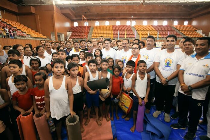 গোটা বিশ্ব জুড়েই বুধবার উদযাপিত নবম আন্তর্জাতিক যোগা দিবস। বিশ্বের বিভিন্ন প্রান্তের সাথে রাজ্যেও সরকারি বেসরকারি উদ্যোগে উদযাপন করা হয় দিবসটি। সরকারিভাবে ছাড়া প্রদেশ বিজেপির উদ্যোগেও যোগ ব্যায়ামের মধ্য দিয়ে উদযাপন করা হয় বিশ্ব যোগা দিবস। আগরতলা এনএসআরসিসিতে প্রদেশ বিজেপি আয়োজিত বিশ্ব যোগা দিবসের কর্মসূচিতে উপস্থিত ছিলেন রাজ্যের মুখ্যমন্ত্রী ডক্টর মানিক সাহা, প্রদেশ বিজেপি সভাপতি রাজীব ভট্টাচার্যসহ এক ঝাঁক নেতৃত্ব। এদিন যোগ ব্যায়ামের মধ্য দিয়েই দিবসকে উদযাপন করলো প্রদেশ বিজেপি। এই কর্মসূচিতে বক্তব্য রাখতে গিয়ে রাজ্যের মুখ্যমন্ত্রী ডক্টর মানিক সাহা বলেন প্রধানমন্ত্রী নরেন্দ্র মোদীর উদ্যোগেই গোটা বিশ্বে আজ যোগা দিবস উদযাপন হচ্ছে। বিশ্ব যোগা দিবস উদযাপনের পুরো কৃতিত্ব দেশের প্রধানমন্ত্রী। যোগা একটা ব্যায়াম নয়, যোগা হল ভারতীয় ঐতিহ্য সংস্কৃতির পরম্পরা। বিদেশি শাসনে একসময় এই যোগা ভুলে যাওয়ার পথে ছিল। এই অবস্থা থেকে দেশের ঐতিহ্যকে আবার ফিরিয়ে এনেছেন প্রধানমন্ত্রী নরেন্দ্র মোদি।