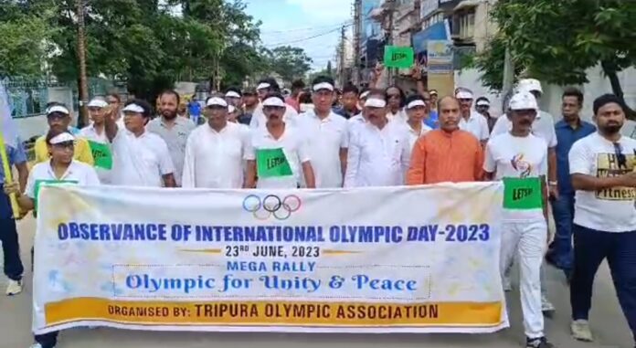 ২৩ জুন আন্তর্জাতিক অলিম্পিক দিবস। অলিম্পিক গেমসে আরও বেশি মানুষকে অংশ নিতে উৎসাহিত করতে ও ইভেন্টটি সম্পর্কে আরো বেশি সচেতনতা ছড়িয়ে দিতে এই দিনটি পালিত হয়। খ্রিস্টপূর্ব অষ্টম শতাব্দী থেকে খ্রিস্টীয় চতুর্থ শতাব্দী পর্যন্ত গ্রিসের অলিম্পিয়াতে অনুষ্ঠিত হওয়া প্রাচীন অলিম্পিক গেমস থেকে অনুপ্রাণিত হয়ে আধুনিক অলিম্পিক গেমসের সৃষ্টি হয়েছে । ১০৪৮ সালে প্রথম অলিম্পিক দিবস উদযাপিত হয়েছিল। শুক্রবার অলিম্পিক দিবস উপলক্ষে এিপুরা অলিম্পিক অ্যাসোসিয়েশনের উদ্যোগে এক রেলির আয়োজন করা হয়। এিপুরা অলিম্পিক অ্যাসোসিয়েশন এর সঙ্গে যুক্ত বিভিন্ন ক্রীড়া সংগঠন গুলো এদিনের এই রেলিতে অংশগ্রহণ করে। রেলিটি রবীন্দ্র ভবনের সামনে থেকে শুরু হয়ে শহরের বিভিন্ন পথ পরিক্রমা করে ফের রবীন্দ্র ভবনে সামনে এসে শেষ হয়। এদিনের রেলিতে উপস্থিত ছিলেন মন্ত্রী বিকাশ দেববর্মা, বিজেপির প্রদেশ সভাপতি রাজীব ভট্টাচার্য, এিপুরা অলিম্পিক অ্যাসোসিয়েশনের সচিব সুজিত রায়, চেয়ারম্যান রতন সাহাসহ বিভিন্ন ক্রীড়া সংগঠনের কার্যকর্তারা।
