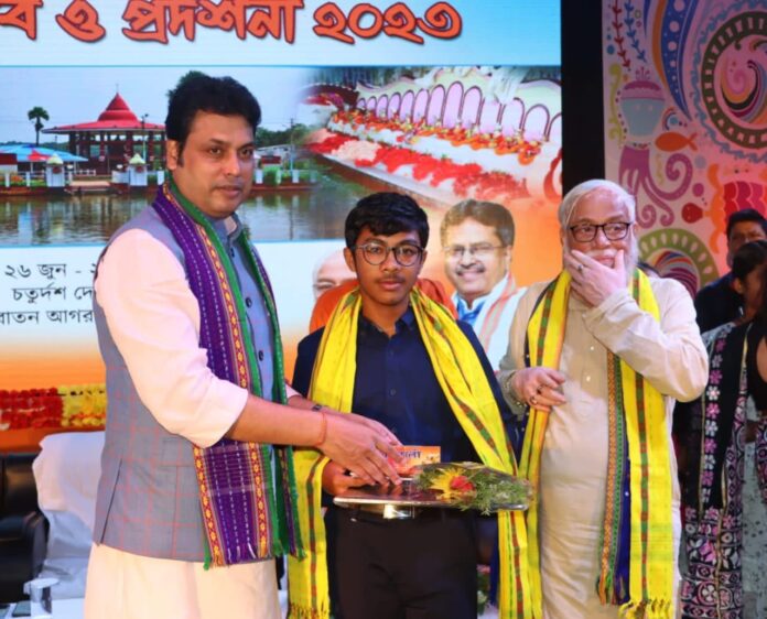 খার্চি পূজার কৃষ্ণ মালা মঞ্চে আয়োজিত কৃতি সংবর্ধনা অনুষ্ঠানে সাংসদ বিপ্লব কুমার দেব