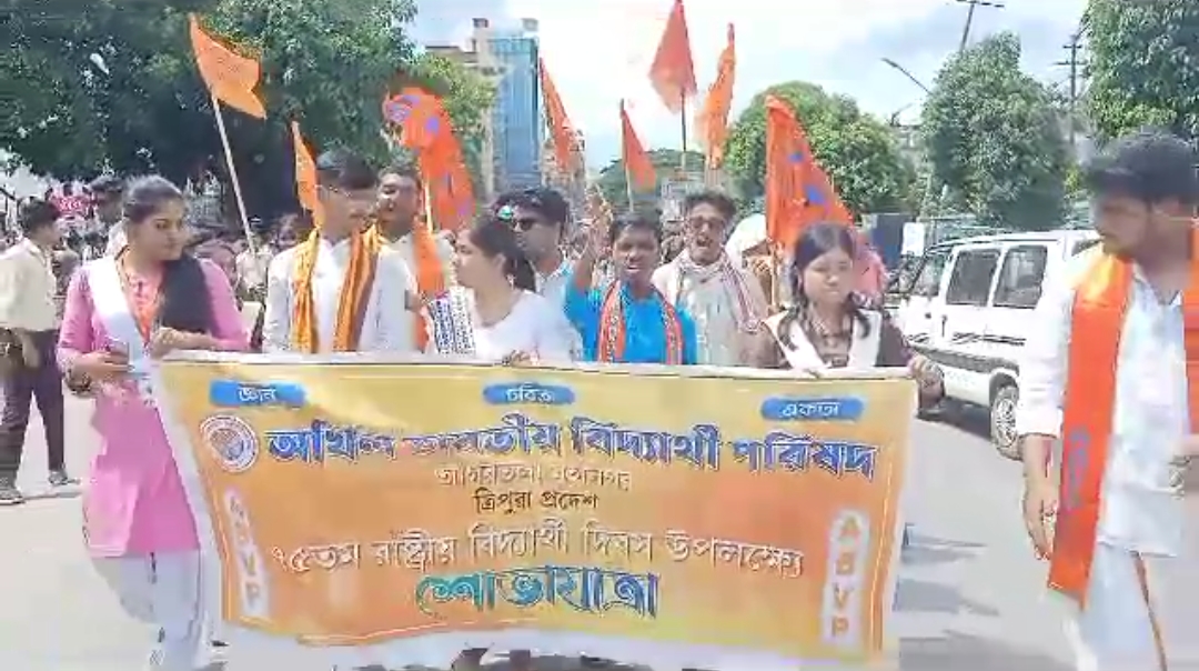 ৭৫ তম রাষ্ট্রীয় বিদ্যার্থী দিবস উপলক্ষে বুধবার এক মুক্ত মঞ্চ সভা ও ছাত্রছাত্রীদের মধ্যে এক বর্নাঢ্য রেলি অনুষ্ঠিত হয়। এই রেলিটি রবীন্দ্রভবন প্রাঙ্গণ থেকে শুরু করে আগরতলার বিভিন্ন জায়গা পরিক্রমা করে। রেলিতে বিভিন্ন স্কুল কলেজের ছাত্র ছাত্রীরা অংশ গ্রহণ করে। এই উপলক্ষে এদিন শুধু আগরতলায়’ই নয় রাজ্যের বিভিন্ন জায়গায় ৭৫ তম রাষ্ট্রীয় বিদ্যার্থী দিবস উপলক্ষে বিভিন্ন কার্যক্রম ও মিছিল সংগঠিত হয়। জানালেন অখিল ভারতীয় বিদ্যার্থী পরিষদের পশ্চিম জেলা কোর্ডিনেটর।