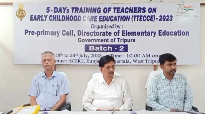 রাজ্যেও একের পর এক কার্যকর হতে চলেছে জাতীয় নয়া শিক্ষা নীতি। জাতীয় শিক্ষানীতির অঙ্গ হিসেবে রাজ্যের বেশ কিছু সংখ্যক বিদ্যালয়ে চালু করা হয়েছে প্রাক-প্রাথমিক শাখা। এই প্রি প্রাইমারি শাখার মধ্য দিয়ে কচিকাচাদের পঠন পাঠনে নতুন ভাবনা সংযোজন করা হয়। রাজ্যে এই মুহূর্তে স্কুলগুলিতে রয়েছে শিক্ষক স্বল্পতা। এরপরেও কম শিক্ষক দিয়ে কিভাবে কচিকাঁচাদের পঠন পাঠনে নতুন ভাবনা কার্যকর করা সম্ভব তার জন্য রাজ্য সরকারের প্রাথমিক শিক্ষা অধিকর্তার অধীন প্রি প্রাইমারি সেলের উদ্যোগে আয়োজন করা হয় শিক্ষক-শিক্ষিকাদের নিয়ে বিশেষ কর্মশালার। মঙ্গলবার থেকে আগরতলা কুঞ্জবন স্থিত এসসিইআরটি কার্যালয়ে শুরু হলো এই কর্মশালা। পাঁচ দিন ব্যাপী আয়োজিত এই বিশেষ কর্মশালার আনুষ্ঠানিক উদ্বোধন করেন সংশ্লিষ্ট দপ্তরের অধিকর্তা শরদিন্দু চৌধুরী। প্রাক প্রাথমিক স্তরের কচিকাঁচাদের শিক্ষাদানের বিষয়ের উপর শিক্ষাদানের এই প্রশিক্ষণ কর্মসূচিতে অংশ নেন রাজ্যের বিভিন্ন স্কুলের ৬৫ জন শিক্ষক-শিক্ষিকা।