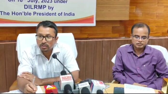 কেন্দ্রীয় সরকারের তরফে রাজ্যের পশ্চিম ত্রিপুরা জেলাকে ভুমি সম্মান প্লাটিনাম এ্যাওয়ার্ড দেওয়া হয়। গত ১৮ই জুলাই দেশের রাষ্ট্রপতির হাত থেকে এই পুরষ্কার গ্রহণ করা হয়। এই বিষয়কে সামনে রেখে বৃহস্পতিবার আগরতলার পশ্চিম ত্রিপুরা জেলা শাসক দেবপ্রিয় বর্ধন জানান মুলত রাজ্যের এই জেলায় ভুমি সংক্রান্ত সব ধরনের তথ্য ডিজিটাইজেশন করার সফলতার নিরিখে এই পুরস্কার এদিন প্রদান করা হয়েছে। তিনি জানান এতে রাজ্যের জনগণের অনেক সুবিধা হবে। পাশপাশি জমি সংক্রান্ত যে কোন কাজ একটি বিশেষ সফটওয়্যারের মাধ্যমে ডিজিটাইজেশন করা হয়।যার ফলে জনগণের এতে অনেক সুবিধা হবে। এমন কি বিভিন্ন পরিষেবা ও এখন থেকে জনগণ এর মাধ্যমে নিতে পারবে। সেই সকল কাজের নিরিখে সফলতার স্বরূপ এই পুরষ্কার এদিন প্রদান করা হয়েছে বলে জানান তিনি। এমনটাও জানান এই কাজের সাথে যারা তৃনমূল স্তর থেকে যুক্ত রয়েছেন তাদের পরিশ্রমের ফলেই তা সম্ভব হয়েছে।এদিন জেলাশাসক জানান সম্প্রতি পি আর টি সি নিয়ে জেলা শাসকের অফিসে অভিযোগ জমা পড়েছে। সাথে সাথে তিনি এর তদন্তের নির্দেশ দিয়েছেন।তদন্তে দোষী সাব্যস্ত হলে অবশ্যই শাস্তি পেতে হবে। এমনটাও জানান ইতিমধ্যেই মহকুমা শাসকদের নিয়ে এই বিষয়ে আলোচনা করা হয়েছে। পি আর টি সি সংক্রান্ত নির্দিষ্ট গাইড লাইন রয়েছে।তা না মেনে এই ধরনের কাজ করা হয়েছে বলে প্রমাণিত হলে অবশ্যই শাস্তি পেতে হবে বলেও জানান তিনি। এই সাংবাদিক সম্মেলনে এ দিন অন্যান্যদের মধ্যে উপস্থিত ছিলেন পশ্চিম ত্রিপুরা জেলার এ ডি এম রাজীব দত্ত এবং ব্রাঞ্চ অফিসার রেভিনিউ শীর্ষেন্দু দেববর্মা।