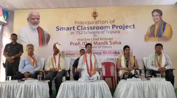 সময়ের সাথে সঙ্গতি রেখে শিক্ষাব্যবস্থায় উন্নতির মাধ্যমে ছাত্র-ছাত্রীদের আরও বেশি করে স্মার্ট করে তোলার জন্য কেন্দ্রীয় সরকার চালু করে স্মার্ট ক্লাসরুম প্রজেক্ট। এই প্রজেক্ট রাজ্যে প্রাথমিকভাবে ৭৫২ টি সরকারি স্কুলে প্রয়োগ করার সিদ্ধান্ত নেওয়া হয়। গৃহীত সিদ্ধান্ত মোতাবেক আগরতলা উমাকান্ত একাডেমিতে এক যুগে ৭৫২ টি সরকারি বিদ্যালয়ে চালু করা হয় এই প্রকল্প। শুক্রবার এক অনুষ্ঠানের মধ্য দিয়ে স্মার্ট ক্লাসরুম প্রজেক্ট এর আনুষ্ঠানিক সূচনা করলেন রাজ্যের মুখ্যমন্ত্রী তথা শিক্ষা মন্ত্রী ডঃ মানিক সাহা। এদিনের এই অনুষ্ঠানে উপস্থিত ছিলেন শিক্ষা দপ্তরের উচ্চপদস্থ আধিকারিকরাও। প্রকল্পের সূচনা করে এদিন ক্লাসরুমে গিয়ে ডিজিটাল ক্লাসের সবকিছু খতিয়ে দেখেন মুখ্যমন্ত্রী। পরে অনুষ্ঠানে বক্তব্য রাখতে গিয়ে মুখ্যমন্ত্রী ডঃ মানিক সাহা বলে রাজ্যের বিদ্যালয় শিক্ষা ব্যবস্থাকে আরো সুদৃঢ করার লক্ষ্যে এবং গুণগত শিক্ষার প্রসারে প্রতিনিয়ত নতুন নতুন উদ্যোগ এবং পরিকল্পনা নিয়ে কাজ করে চলেছে বর্তমান রাজ্য সরকার। রাজ্যে ছাত্রছাত্রীদের প্রতিভার অভাব নেই। গুণগত মান বজায় রেখে ছাত্র-ছাত্রীদের শিক্ষা দেওয়ার লক্ষ্যেই এই প্রকল্প। তিনি আরো বলেন শিক্ষা স্বাস্থ্য ও পিসিকে অগ্রাধিকার দিয়ে কাজ করছে সরকার। স্মার্ট ক্লাসে একদিকে যেমন ছাত্র-ছাত্রীদের উপস্থিতির হার বাড়বে, তেমনি অত্যাধুনিক এই ব্যবস্থাপনায় ছাত্রছাত্রীরা আরো সামনের দিকে এগিয়ে যাবে।। এই ডিজিটাল পদক্ষেপ বিদ্যালয় পাঠরত ছাত্র-ছাত্রীদের শিক্ষা লাভের ক্ষেত্রে অন্যতম গুরুত্বপূর্ণ ভূমিকা রাখবে বলে মনে করেন মুখ্যমন্ত্রী।