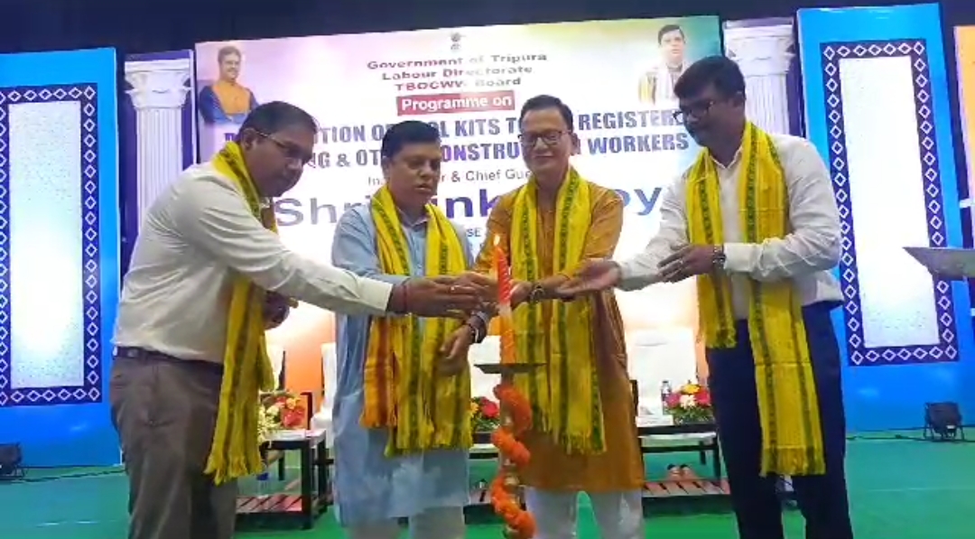 লেবার এন্ড কনস্ট্রাকশন বোর্ডের উদ্যোগে এক অনুষ্ঠানের মধ্য দিয়ে .বৃহস্পতিবার নির্মাণ শ্রমিকদের হাতে বিভিন্ন সামগ্রী তুলে দেওয়া হয়। এই অনুষ্ঠানের উদ্বোধন করেন মন্ত্রী টিংকু রায়। এবিষয়ে তিনি জানান লেবার এন্ড কনস্ট্রাকশন বোর্ডের উদ্যোগে নথিভুক্ত নির্মাণ শ্রমিকদের প্রশিক্ষণের ব্যবস্থা করা হয়। প্রায় এক হাজার নির্মাণ শ্রমিক প্রশিক্ষণ শিবিরে অংশগ্রহণ করেছে। এই প্রশিক্ষণ প্রাপ্ত শ্রমিকদের মধ্যে ৫০০ জন শ্রমিককে এদিন বিভিন্ন সামগ্রী বিতরণ করা হয়। যাতে করে তারা নিজের পায়ে নিজে দাঁড়াতে পারে । এদিন তিনি আরও জানান রাজ্যে শহর এবং গ্রাম মিলিয়ে প্রায় ৩ লক্ষাধিক পরিবার প্রধানমন্ত্রী আবাস যোজনায় ঘর পেয়েছেন। সেই ঘর নির্মাণে যে শ্রমিক প্রয়োজন এর একটা বড় যোগান এ জায়গা থেকে। এই প্রশিক্ষণের মাধ্যমে শ্রমিকদের স্বনির্ভর করে গড়ে তোলা হচ্ছে। এই লক্ষ্য নিয়ে এই বোর্ড কাজ করছে। এদিন মুক্তধারা অডিটোরিয়ামে আয়োজিত এক অনুষ্ঠানে যুব কল্যাণ ও ক্রীড়া দপ্তরের মন্ত্রী টিংকু রায় ছাড়াও অন্যান্যদের মধ্যে উপস্থিত ছিলেন, লেবার এন্ড কনস্ট্রাকশন বোর্ডের চেয়ারম্যান তথা বিধায়ক বিনয় ভূষণ দাস সহ অন্যান্যরা।