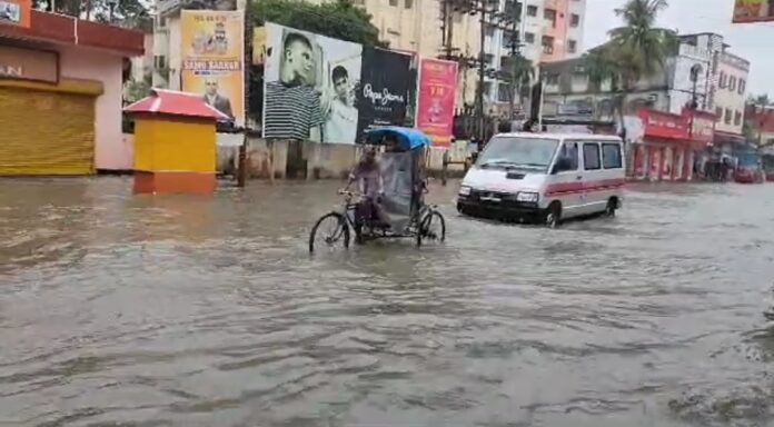 ধারাবাহিক হালকা মাঝারি বৃষ্টিপাতে স্যার আরো একবার ভানবাসীর রূপ নিল স্মার্ট সিটির শহর আগরতলা। রবিবার প্রায় সকাল থেকেই রাজধানী আগরতলা শহর সহ রাজ্যের বিভিন্ন স্থানে শুরু হয় হালকা মাঝারি বৃষ্টিপাত। দুপুরের দিকে মুষলধারে বৃষ্টিপাত হাওয়ায় রাজধানী আগরতলা শহর এলাকার নিম্নাঞ্চলগুলি বৃষ্টির জলে প্লাবিত হয়ে পড়ে। বিশেষ করে আগরতলা শহরের বেশ কিছু রাস্তাঘাট বানভাসির রূপ নেয়। শহরের বহু দোকানপাটে জল ঢুকে পড়ে। বাড়িঘরেও জল প্রবেশ করায় পরিস্থিতি যেন মারাত্মক আকার ধারণ করে কোন কোন এলাকায়। সরকারি ছুটির দিন থাকায় শহরে লোকসমাগম অনেকটা কম থাকলেও শহরের ব্যস্ততম রাস্তা গুলি জলমগ্ন হয়ে পড়ায় অনেকটা ব্যাহত হয় জনজীবন। বর্ষাকালে রাজধানী আগরতলা শহরবাসীকে বানভাসি অবস্থা থেকে রক্ষা করার জন্য পুর ও প্রশাসনের তরফ থেকে নানা পদক্ষেপ গ্রহণ করা হলেও, কার্যত সবকিছুই যে ব্যর্থ তা আরো একবার প্রমাণিত হলো রবিবারের বানভাসীর চিত্রের মধ্য দিয়ে। তবে বৃষ্টির জল এদিন বেশি সময় স্থায়ী থাকেনি ব্যস্ততম সড়কে। শহর এলাকার সবগুলি পাম্প চালানোর ফলে সহসাই পুরনো ছন্দে যেন ফিরে আসে শহর আগরতলা।
