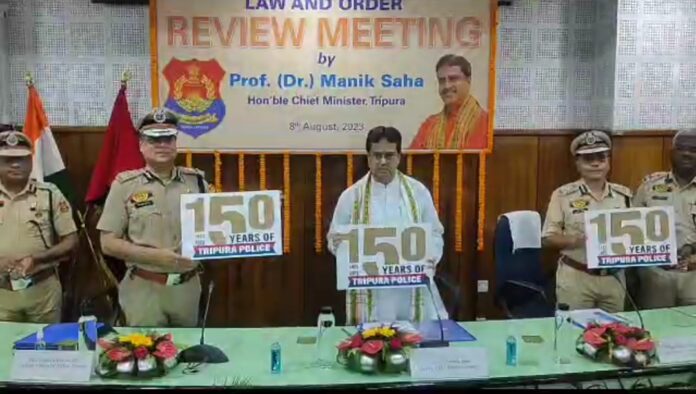 রাজা বীরচন্দ্র মানিক্যের রাজত্বকালে ১৮৭৩ -৭৪ সালে রাজ্যে পুলিশ প্রশাসন প্রথমবারের মতো স্থাপিত হয়। সেই থেকে যাত্রা শুরু রাজ্য পুলিশের ।দেখতে দেখতে ১৫০ বছর অতিক্রম করল রাজ্য পুলিশ। ১৫০ বছর পূর্তি উপলক্ষে মঙ্গলবার প্রজ্ঞা ভবনে এক উচ্চপর্যায়ের পর্যালোচনা বৈঠক অনুষ্ঠিত হয় ।এই বৈঠকে উপস্থিত ছিলেন রাজ্যের স্বরাষ্ট্র দপ্তরের দায়িত্বপ্রাপ্ত তথা মুখ্যমন্ত্রী প্রফেসর ডাক্তার মানিক সাহা ।প্রজ্ঞা ভবনের বাইরে মুখ্যমন্ত্রীকে গার্ড অফ অনার প্রদান করে রাজ্য পুলিশ ।পরে প্রজ্ঞা ভবনে প্রায় দেড় ঘন্টা এই পর্যালোচনা বৈঠক চলে ।বৈঠকে উপস্থিত ছিলেন রাজ্য পুলিশের মহা নির্দেশক থেকে শুরু করে সমস্ত উচ্চপদস্থ পুলিশ আধিকারিকেরা ।বৈঠকে রাজ্যের বিভিন্ন বিষয় নিয়ে বিস্তারিত আলোচনা হয়। পর্যালোচনা বৈঠক শেষে উপস্থিত সাংবাদিকদের মুখ্যমন্ত্রী জানান ,বৈঠকে রাজ্যকে নেশা মুক্ত করার বিষয়ে বিস্তারিত আলোচনা হয়েছে ।সংশ্লিষ্ট বিষয়ে পুলিশও বেশ সজাগ ।এই ক্ষেত্রে জিরো টলারেন্স নীতি নিয়ে এগোচ্ছে রাজ্য। নেশা কারবারিদের কোনমতেই ছেড়ে কথা বলা হবে না বলে জানান মুখ্যমন্ত্রী ।তিনি আরো জানান ,রোহিঙ্গা অনুপ্রবেশ সমস্যাটি নিয়েও বৈঠকে বিস্তারিত আলোচনা হয়েছে। এছাড়াও পর্যালোচনা সভায় বক্তব্য রাখেন রাজ্যে পুলিশের মহা নির্দেশক সহ অন্যান্য উচ্চপদস্হ আধিকারিকরা।
