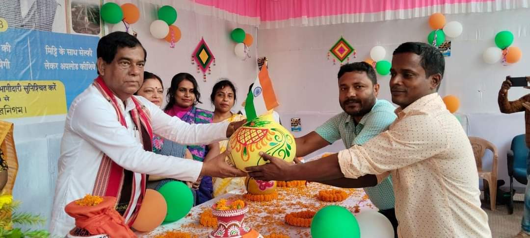 মেরি মিট্টি মেরা দেশ কর্মসূচির অঙ্গ হিসেবে রাজ্যের বিভিন্ন প্রান্ত থেকে নিয়ে আসা মাটির কলস গ্রহণ করেন মেয়র দীপক মজুমদার