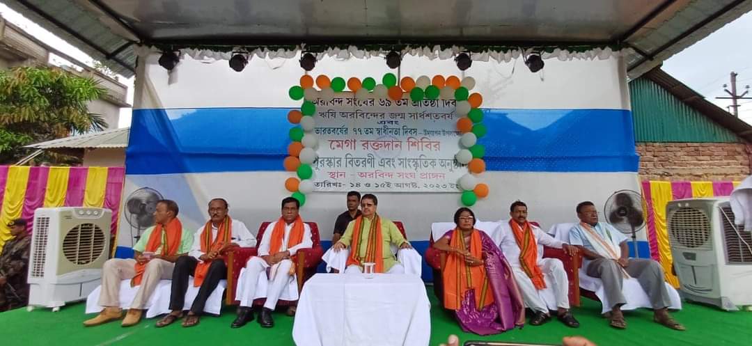 দেশের স্বাধীনতা দিবসকে সামনে রেখে গোটা রাজ্য জুড়ে চলছে এখন নানা কর্মকাণ্ড। সরকারিভাবে ছাড়াও বেসরকারিভাবে বিভিন্ন ক্লাব ও সংগঠন সমাজসেবামূলক নানা কর্মসূচির মধ্য দিয়ে এবছর উদযাপন করতে চলেছে দেশের স্বাধীনতা দিবস। সোমবার এমনটাই দেখা গেল আগরতলা অরুন্ধতীনগরস্থিত অরবিন্দ সংঘ প্রাঙ্গনে। অরবিন্দ সংঘের ৬৯ তম প্রতিষ্ঠা দিবসে ঋষি অরবিন্দের জন্ম শতবর্ষ এবং ভারতবর্ষের ৭৭ তম স্বাধীনতা দিবস উদযাপন উপলক্ষে আয়োজন করা হয় মেগা রক্তদান শিবির এবং দুদিন ব্যাপী পুরস্কার বিতরণী ও সাংস্কৃতিক অনুষ্ঠানের। সোমবার সকালে আয়োজিত এই কর্মসূচির আনুষ্ঠানিক উদ্বোধন করলেন রাজ্যের মুখ্যমন্ত্রী ডঃ মানিক সাহা। উদ্বোধনী অনুষ্ঠানে মুখ্যমন্ত্রী ছাড়াও উপস্থিত ছিলেন আগরতলা পৌর নিগমের মেয়র দীপক মজুমদার, এলাকার বিদায়িকা মিনারানী সরকার, কর্পুরেটর অলক রায়, বিশিষ্ট সমাজসেবী সঞ্জয় সাহা সহ ক্লাব কর্মকর্তারা। এদিনের এই অনুষ্ঠানে বক্তব্য রাখতে গিয়ে মুখ্যমন্ত্রী বলেন একটা ক্লাবের উপর এলাকার অনেক কিছু নির্ভর করে। মানুষ ক্লাবের উপর অনেক কিছু আশা করে। নিরপেক্ষ ভূমিকা নিয়ে যদি ক্লাব মানুষের সাথে কাজ করতে পারে তাহলে সেই ক্লাবের উপর মানুষের আস্থা অনেকটা বাড়বে। যেমনটা একটা সরকারের মত। সংখ্যাগরিষ্ঠতা নিয়ে সরকার গঠন হবার পর সেই সরকার সবার হয়। ঠিক তেমনি একটি ক্লাব সবার জন্য কাজ করতে পারলে সেই ক্লাবের প্রতি আস্থা বাড়বে।