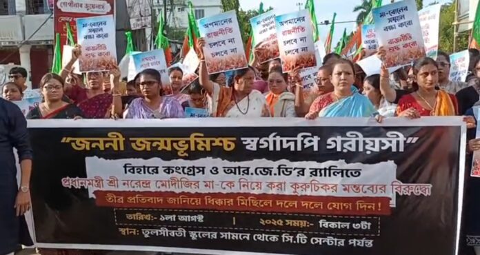 বিহারের দারভাঙ্গা জেলায় প্রচারে গিয়ে সর্বভারতীয় কংগ্রেস নেতৃত্ব রাহুল গান্ধী প্রধানমন্ত্রী নরেন্দ্র মোদীর মাকে নিয়ে কুরুচিকর মন্তব্য করেন ।রাহুল গান্ধীর এই মন্তব্য ঘিরে গোটা দেশে তীব্র প্রতিক্রিয়া সৃষ্টি হয়েছে। এর রেশ আছরে পড়েছে ত্রিপুরাতেও ।সোমবার রাহুল গান্ধীর এই কুরুচিকর মন্তব্যের বিরুদ্ধে প্রতিবাদ জানিয়ে রাজধানীতে এক ধিক্কার মিছিল সংঘটিত করে প্রদেশ বিজেপি। মিছিলটি মহারানী তুলসীবতী স্কুলের সামনে থেকে শুরু হয়ে শহরের বিভিন্ন পথ পরিক্রমা করে পোস্ট অফিস চৌমুহনীস্হিত কংগ্রেস ভবনের সামনে এসে বিক্ষোভ প্রদর্শন কর্মসূচিতে শামিল হয়। এই কর্মসূচিতে উপস্থিত ছিলেন প্রদেশ বিজেপি সভাপতি তথা রাজ্যসভার সাংসদ রাজীব ভট্টাচার্য ,মন্ত্রী সুশান্ত চৌধুরী ,সুধাংশু দাস, টিংকু রায় ,বিকাশ দেববর্মা, সান্তনা চাকমা, বিধানসভার মুখ্য সচেতক কল্যাণী রায় থেকে শুরু করে প্রদেশ বিজেপির প্রথম সারির নেতৃবৃন্দ ।এদিন কংগ্রেস ভবনের সামনে রাজপথ দখল করে বিজেপি কর্মী সমর্থকরা বিক্ষোভ প্রদর্শন করেন ।এই কর্মসূচিতে স্লোগান তোলেন মন্ত্রী সুধাংশু দাস।এই বিক্ষোভ কর্মসূচি প্রসঙ্গে প্রদেশ বিজেপি সভাপতি তথা রাজ্যসভার সাংসদ রাজীব ভট্টাচার্য জানান, প্রধানমন্ত্রীর নরেন্দ্র মোদি যখন বিকশিত ভারতের জন্য প্রয়াস চালিয়ে যাচ্ছেন ,সমাজের সকল অংশের মানুষকে সাথে নিয়ে সবকা সাথ সবকা বিকাশের লক্ষ্যে কাজ করছেন ,তখন বিরোধী রাজনৈতিক নেতৃবৃন্দ কোনো ইস্যু খুঁজে পাচ্ছেন না। সব দরজা তাদের সামনে বন্ধ হয়ে গেছে ।তাই এখন গালিগালাজ করে বিজেপিকে এবং প্রধানমন্ত্রীর নরেন্দ্র মোদিকে বদনাম করার চেষ্টা করছেন ।প্রদেশ বিজেপি সভাপতি জানান, এই সমস্ত নেতৃবৃন্দকে স্পষ্ট ভাষায় জানিয়ে দিতে চাই, বিজেপি কর্মীরা শালীনতা যেমন বোঝে তেমনি শ্যামাপ্রসাদ মুখার্জির উক্তিও তারা স্মরণে রাখে ,অন্যায়ের প্রতিবাদ করো ,অন্যায়ের বিরুদ্ধে প্রতিরোধ গড়ে তোল, প্রয়োজনে প্রতিশোধ নাও।
