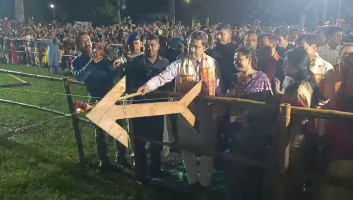 বৃহস্পতিবার সমাপ্ত হলো দশেরা উৎসব ।একই সাথে সম্পন্ন হয়েছে বিজয়া দশমিও। এতদিন রাজধানীতে দশেরা উৎসব পালন করতে দেখা যেত একমাত্র ওএনজিসি কমপ্লেক্স এলাকায় ।বর্তমানে বিভিন্ন ক্লাব ও সামাজিক সংগঠন দশরা উৎসব পালন করছে। বৃহস্পতিবার প্রথমবারের মতো দশেরা উৎসব পালন করল রাজধানীর কুমারী টিলাস্হিত বর্ণালী সংঘ। এই অনুষ্ঠানে প্রধান অতিথি হিসেবে উপস্থিত ছিলেন রাজ্যের মুখ্যমন্ত্রী অধ্যাপক ডাক্তার মানিক সাহা। বিশেষ অতিথি হিসেবে উপস্থিত ছিলেন আগরতলা পৌর নিগমের মেয়র তথা বিধায়ক দীপক মজুমদার, বিশিষ্ট সমাজসেবী পাপিয়া দত্ত সহ অন্যান্যরা। এই অনুষ্ঠানে বক্তব্য রাখতে গিয়ে দশেরা উপলক্ষে রাজ্যবাসীকে শুভেচ্ছা এবং অভিনন্দন জানান মুখ্যমন্ত্রী অধ্যাপক ডাক্তার মানিক সাহা ।তিনি বলেন ,দিনটি আমাদের কাছে খুবই পবিত্র এবং খুশির দিন ।একদিকে এই দিনে মহিষাসুর বধ করেছিলেন মা দুর্গা। অপরদিকে রাবণ বধ করেছিলেন রাম ।এই ধরনের অনুষ্ঠান আয়োজনের জন্য উদ্যোক্তা বর্ণালী সংঘের সদস্যদের অভিনন্দন জানান মুখ্যমন্ত্রী।