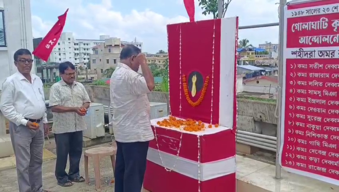 ৭৮তম গোলাঘাটি কৃষক শহীদ দিবস পালন করলো বাম সংগঠনগুলি ।সারা ভারত কৃষক সভা ,উপজাতি গণমুক্তি পরিষদ এবং ক্ষেত মজুর ইউনিয়ন যৌথভাবে এই শহীদ দিবস উদযাপন করে ।মহাজনি শোষণের বিরুদ্ধে প্রতিবাদ জানাতে গিয়ে ১৯৪৮ সালের ২৩ আশ্বিন গোলাঘাটি এলাকায় পুলিশের গুলিতে নিহত ১৩ জন কৃষককে এই অনুষ্ঠানের মাধ্যমে স্মরণ করা হয়।
