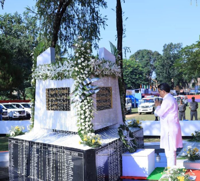 সারা দেশের সাথে রাজ্যেও যথাযোগ্য মর্যাদায় আজ পুলিশ স্মৃতি রক্ষা দিবস পালন করা হয়। আগরতলার অরুন্ধতীনগরস্থিত মনোরঞ্জন দেববর্মা স্মৃতি স্টেডিয়ামে মূল অনুষ্ঠানের আয়োজন করা হয়। অনুষ্ঠানে মুখ্যমন্ত্রী প্রফেসর (ডা.) মানিক সাহা কর্তব্যরত অবস্থায় যেসব পুলিশকর্মী ও জওয়ান শহীদ হয়েছেন তাদের স্মৃতির প্রতি শ্রদ্ধা জানিয়ে স্মৃতিসৌধে পুষ্পস্তবক অর্পণ করে শ্রদ্ধা জ্ঞাপন করেন। মুখ্যসচিব জে কে সিনহা, রাজ্য পুলিশের মহানির্দেশক অনুরাগ সহ পুলিশের পদস্থ আধিকারিকগণ শহীদদের স্মৃতিতে শ্রদ্ধাঞ্জলি অর্পণ করেন। পুলিশ স্মৃতিরক্ষা দিবস অনুষ্ঠানে গত ১ সেপ্টেম্বর, ২০২৪ থেকে ৩১ আগস্ট, ২০২৫ পর্যন্ত কর্তব্যরত অবস্থায় যারা শহীদ হয়েছেন দেশের এমন ১৯১ জন পুলিশ ও জওয়ানদের প্রতি শ্রদ্ধা নিবেদন করা হয়। এর মধ্যে রাজ্যের ২জন রয়েছেন। রাজ্য পুলিশের সাব-ইন্সপেক্টর ডেভিড ডার্লং উত্তর ত্রিপুরার খেদাছড়ায় এবং টিএসআর জওয়ান রাইফেলম্যান মিলন দেববর্মা কৈলাসহর থানাধীন চিড়াকুটি ট্রাইজাংশনে কর্তব্যরত অবস্থায় শহীদ হন। মুখ্যমন্ত্রী শহীদ সাব-ইন্সপেক্টর ডেভিড ডার্লং এবং রাইফেলম্যান মিলন দেববর্মার স্মৃতির প্রতি শ্রদ্ধা জানান এবং তাদের পরিবার-পরিজনদের প্রতি সমবেদনা জ্ঞাপন করেন।