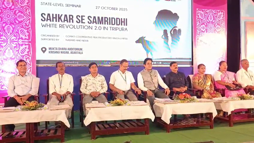 দুগ্ধ উৎপাদন বৃদ্ধির লক্ষ্যে গোপালকদের নিয়ে সাকার সে সমৃদ্ধি শীর্ষক একদিনের কর্মশালার আয়োজন করল গোমতী কো অপারেটিভ মিল্ক প্রডিউসার্স ইউনিয়ন লিমিটেড। নাবার্ড এবং ন্যাশনাল ডাইরি ডেভেলপমেন্ট বোর্ডের সহযোগিতায় রাজধানীর মুক্তধারা প্রেক্ষাগৃহে এই কর্মশালার আয়োজন করা হয় ।কর্মশালায় উপস্থিত ছিলেন এনডিডিবি’র উত্তর পূর্বাঞ্চলের দায়িত্বপ্রাপ্ত আধিকারিক সব্যসাচী রায় এবং নাবার্ডের আধিকারিকরা।