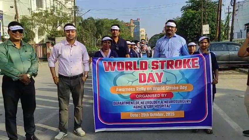 বোধবার 29 অক্টোবর। সারা বিশ্বে এই দিনটি আন্তর্জাতিক স্ট্রোক দিবস হিসেবে উদযাপিত হচ্ছে ।স্ট্রোকের গুরুতর প্রকৃতি এবং উচ্চ হারের উপর জোর দেওয়া- এই অবস্থার প্রতিরোধ এবং চিকিৎসা সম্পর্কে সচেতনতা বৃদ্ধি করতে সারা বিশ্বের সাথে আমাদের দেশ এবং রাজ্যেও বিভিন্ন উদ্যোগ গ্রহণ করা হয়েছে ।বিশ্ব স্ট্রোক দিবস উদযাপন উপলক্ষে বৃহস্পতিবার সকালে রাজধানীতে একটি সচেতনতামূলক রেলি সংঘটিত করে এজিএমসির নিউরোলজি এবং নিউরো সার্জারি বিভাগ ।রাজধানীর রবীন্দ্র শতবার্ষিকী ভবনের সামনে থেকে শুরু হয় এই রেলি ।রেলিতে উপস্থিত ছিলেন এজিএমসির নিউরোলজি বিভাগের চিকিৎসক ডাক্তার আবীর লাল নাথ ,নিউরো সার্জারি বিভাগের চিকিৎসক ডাক্তার রেড্ডি সহ অন্যান্য চিকিৎসকগণ ।ওয়ার্ল্ড স্ট্রোক ডে উদযাপন প্রসঙ্গে এজিএমসির নিউরোলজি বিভাগের চিকিৎসক ডাক্তার আবীর লাল নাথ জানান ,এ বছরের বিশ্ব স্ট্রোক দিবসের মূল প্রতিপাদ্য হলো প্রতিটি মিনিট গণনা করা ।ফাস্ট পদ্ধতি মেনে চললে আমরা স্ট্রোক থেকে নিস্তার পেতে পারি।ফাস্ট মানে F ফর ফিট A ফর আর্ম ,S ফর স্পিচ এবং T ফর টাইম। তিনি বলেন ,যদি কোন ব্যক্তি মনে করেন তার শরীরের কোন একটা দিকে দুর্বল বোধ হচ্ছে, কথা বলতে অসুবিধা হচ্ছে ,হাতের বাহুতে ব্যথা হচ্ছে তবে চিনি সাথে সাথে এজিএমসির নিউরোলজি এবং নিউরো সার্জারি বিভাগে চলে আসতে পারেন। সংশ্লিষ্ট ব্যক্তিকে আমরা চিকিৎসা পরিষেবা দিয়ে সুস্থ করে তুলবো। তিনি আরো বলেন ,এর জন্য সচেতনতা চাই ।আর জনমনে এই সচেতনতার জন্যই এই রেলি সংঘটিত করা হচ্ছে।
