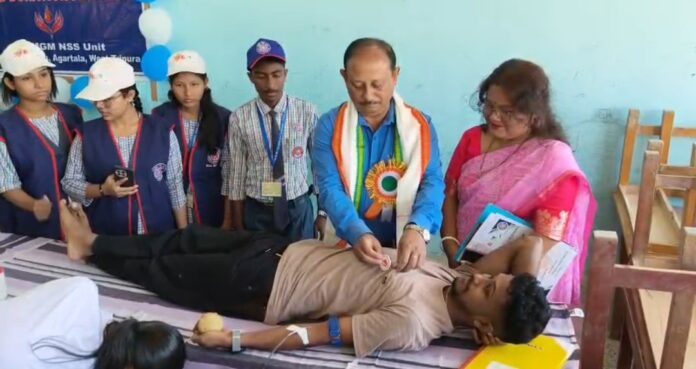 মঙ্গলবার রাজধানীর মহাত্মা গান্ধী মেমোরিয়াল দ্বাদশ শ্রেণী বিদ্যালয়ে সুচনা এন এস এসের সপ্তাহব্যাপী শিবির । আর এই শিবিরের সুচনা হয় এক স্বেচ্ছা রক্তদান শিবিরের মাধ্যমে । এদিনের এই রক্তদান শিবিরে প্রায় ৩০ জনের উপর রক্তদাতা স্বেচ্ছায় রক্তদানে এগিয়ে আসেন। এদিনের এই শিবিরের মূল উদ্দেশ্য হল শিক্ষার্থীদের রক্তদানে উদ্বুদ্ধ করাো এবং অন্যরাও যেন এই মহৎ কর্মসূচীতে এগিয়ে আসে । বলা চলে শিক্ষার্থীদের পড়াশোনার পাশাপাশি দেশাত্মবোধ ও সামাজিক কর্মকাণ্ডে তাদেরকে নিযুক্ত করার লক্ষ্যে প্রতিটি স্কুলেই রয়েছে এনএসএস ইউনিট এবং মহাত্মা গান্ধী মেমোরিয়াল দ্বাদশ শ্রেণী বিদ্যালয়ের এনএসএস ইউনিট প্রতি বছরই এ ধরনের রক্তদান শিবিরের আয়োজন করে থাকে । এন এস এস ইউনিট নিজেদের এই শিবিরের মাধ্যমেই শিক্ষার্থীদের বিভিন্ন বিষয়ে হাতে-কলমে শিক্ষা প্রদান করেন। এদিনের এই কর্মসূচিতে উপস্থিত ছিলেন রাজ্যভিত্তিক ওপেন এনএসএস প্রোগ্রাম অফিসার মলয় লস্কর, স্কুলের প্রধান শিক্ষক টিটু সাহা, এনএসএস ইউনিটের প্রোগ্রাম অফিসার সীমা চাকমা সহ অন্যান্যরা।