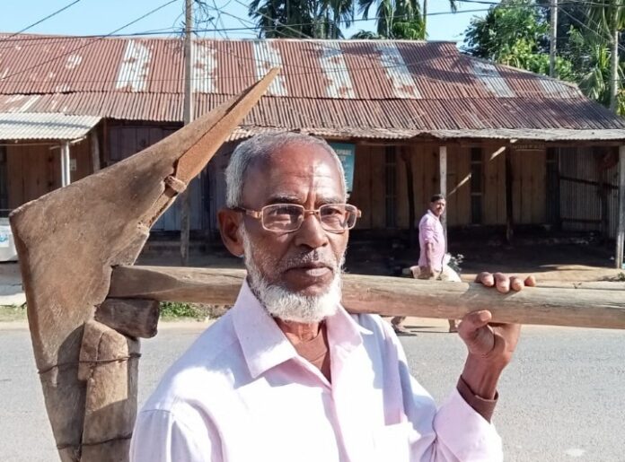 নিজের নাঙ্গলটি ভালো না থাকায় কাঠালিয়ার বাটাখলা গ্রাম থেকে পুরানো এই নাঙ্গলটি সংগ্রহ করে তিনি বাড়িতে নিয়ে যাচ্ছেন।