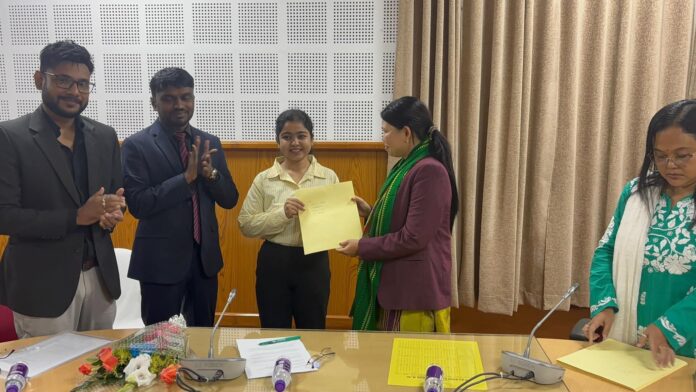 সচিবালয়ের ৩ নং সভাকক্ষে আজ এক অনুষ্ঠানে মুখ্যমন্ত্রী দক্ষতা উন্নয়ন প্রকল্পের অধীনে সফটওয়ার ডেভেলপার হিসেবে নির্বাচিত ৩০ জন প্রার্থীকে অফার লেটার প্রদান করা হয়। শিল্প ও বাণিজ্য দপ্তরের মন্ত্রী সান্ত্বনা চাকমা তাদের হাতে অফার লেটারগুলি তুলে দেন। নির্বাচিতদের হাতে অফার তুলে দিয়ে শিল্প ও বাণিজ্য মন্ত্রী শ্রীমতি চাকমা বলেন, আত্মনির্ভর ত্রিপুরা গড়ে তোলা রাজ্য সরকারের মূল লক্ষ্য। মুখ্যমন্ত্রী প্রফেসর (ডা.) মানিক সাহার নেতৃত্বে রাজ্যে মুখ্যমন্ত্রী দক্ষতা উন্নয়ন প্রকল্প চালু করা হয়েছে। এই প্রকল্পে রাজ্যের ছেলেমেয়েদের বিভিন্ন ক্ষেত্রে প্রশিক্ষণের মাধ্যমে কর্মসংস্থানের সুযোগ সৃষ্টি করার উদ্যোগ নেওয়া হয়েছে। তিনি বলেন, রাজ্যের ছেলেমেয়েরা প্রতিভা ও দক্ষতার দিক থেকে কোনও অংশেই কম নয়। রাজ্য সরকার রাজ্যের ছেলেমেয়েদের বিভিন্ন সুযোগ-সুবিধা প্রদানে সচেষ্ট রয়েছে। আজ যারা অফার পেয়েছেন তারা সবাই আমাদের দেশের এবং রাজ্যের ভবিষ্যত। দেশ ও রাজ্যকে অগ্রগতির পথে এগিয়ে নিয়ে যেতে তাদের অগ্রণী ভূমিকা রয়েছে। তিনি বলেন, বর্তমান রাজ্য সরকার তথ্য ও প্রযুক্তির উন্নয়নে বিশেষভাবে গুরুত্ব দিয়েছে। রাজ্যে আই.টি. হাব গড়ে তোলা এই সরকারের অন্যতম লক্ষ্য। অনুষ্ঠানে শিল্প ও বাণিজ্য মন্ত্রী অফার প্রাপকদের শুভেচ্ছা ও কর্মজীবনে তাদের সফলতা কামনা করেন।