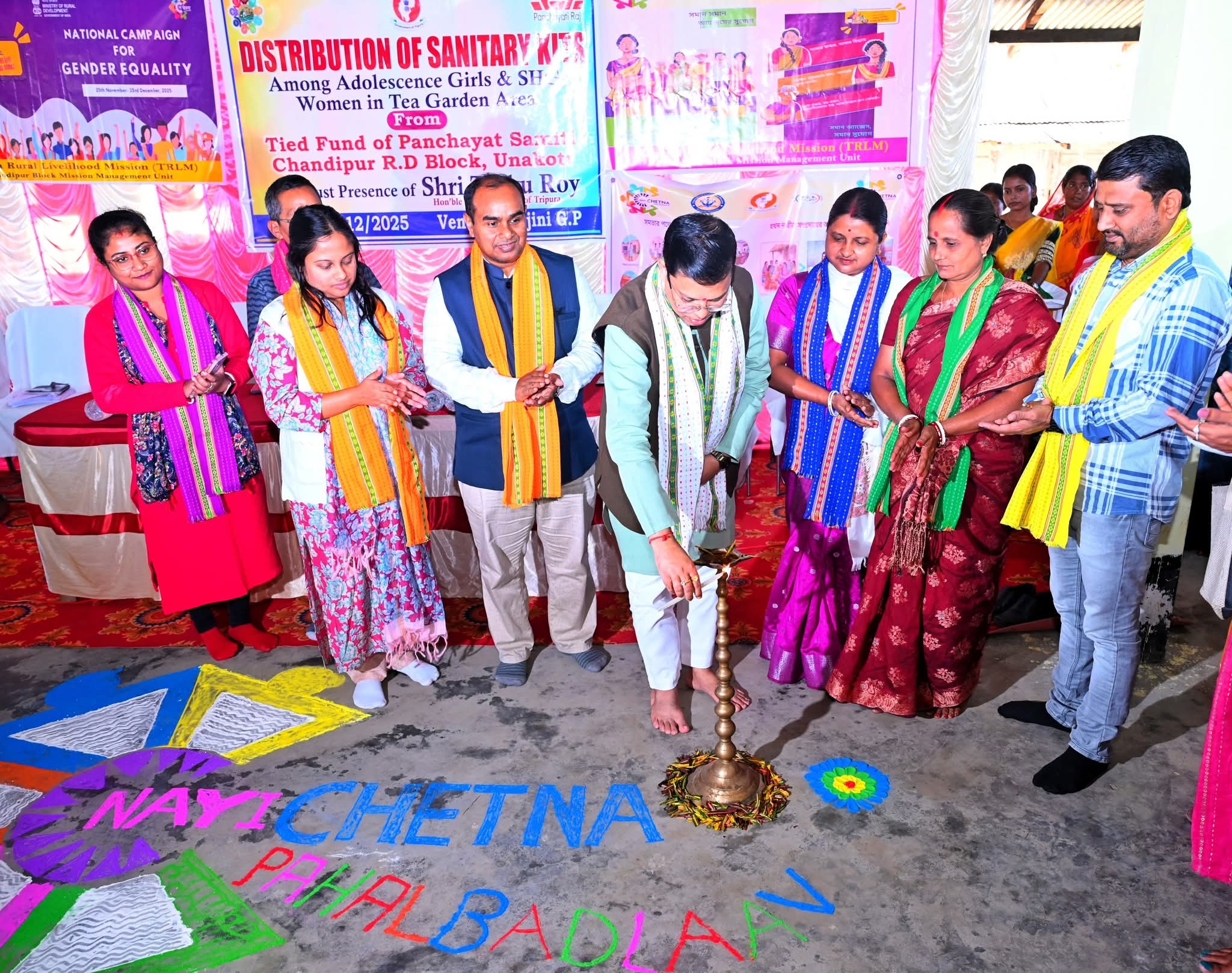 আজ কৈলাসহর মহকুমার চন্ডীপুর ব্লকের সরোজনী পঞ্চায়েত কার্যালয় প্রাঙ্গণে নবচেতনা জাতীয় অভিযানের (৪.০) অঙ্গ হিসেবে একদিনের স্বাস্থ্য শিবির ও নারী সুরক্ষা আইন সচেতনতা বিষয়ক কর্মশালা অনুষ্ঠিত হয়। এই অনুষ্ঠানের উদ্বোধন করে সমাজকল্যাণ ও সমাজশিক্ষা দপ্তরের মন্ত্রী টিংকু রায় বলেন, মহিলা ক্ষমতায়ণে রাজ্য সরকার নিরলসভাবে কাজ করছে। মেয়েরা আজ আর কোন ক্ষেত্রেই পিছিয়ে নেই। তাদের স্বনির্ভর করতে এই সরকার ক্ষমতাসীন হওয়ার পর টিআরএলএম প্রকল্পে এখন পর্যন্ত ১ হাজার ৬০০ কোটি টাকা বরাদ্দ করেছে। তিনি আরও বলেন, বাল্য বিবাহ রোধে রাজ্য সরকার কাজ করছে। কোনও অন্ত্যোদয় পরিবার যদি তাদের মেয়ের বিয়ে ১৮ বছর পর্যন্ত হওয়ার পর দেয়, তবে সেই পরিবারকে ৫০ হাজার টাকা সহায়তা করা হয়। এছাড়াও অন্ত্যোদয় পরিবারে যদি কোনো মেয়ে শিশু জন্ম গ্রহণ করে তাহলে সেই মেয়েটি ১৮ বছর পূর্ণ হওয়ার পর এককালীন ৫০ হাজার টাকা আর্থিক সহায়তা পাবে। তিনি বলেন, যে একজন মা নিজের শিশুর যত্ন নিচ্ছেন, সেই শিশুর শিক্ষার জন্য রাজ্য সরকার প্রতি মাসে ৪ হাজার টাকা করে আর্থিক সহায়তা দিচ্ছে। যা শিশুর ১৮ বছর পর্যন্ত চলবে। গত অর্থবছরে প্রায় ৫ হাজার পরিবার এই সুবিধা পেয়েছে। সমাজকল্যাণ মন্ত্রী বলেন, আজকের মেয়েরা পড়াশোনার পাশাপাশি খেলাধুলা ও অন্যান্য ক্ষেত্রে দেশের নাম উজ্জ্বল করছে। তাদের এই অগ্রযাত্রায় সমাজের প্রতিটি মানুষকে পাশে দাঁড়াতে হবে। অনুষ্ঠানে স্বাগত বক্তব্য রাখেন চন্ডীপুর ব্লকের বিডিও দেবপ্রিয় দাস। তাছাড়া অনুষ্ঠানে চন্ডীপুর পঞ্চায়েত সমিতির চেয়ারম্যান সম্পা দাস পাল, কৈলাসহর মহকুমার মহকুমা শাসক বিপুল দাস বক্তব্য রাখেন।