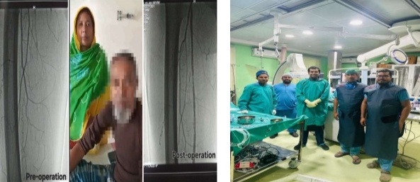 আগরতলা গভর্নমেন্ট মেডিক্যাল কলেজ অ্যান্ড জিবিপি হাসপাতালের কার্ডিওলজি ডিপার্টমেন্টের কার্ডিওলজিস্ট চিকিৎসকদের উন্নত চিকিৎসা পরিষেবা প্রদানের ফলেই প্রাণ ফিরে পেলেন সোনামুড়ার ৫৬ বৎসর বয়সী একজন সংকটাপন্ন রোগী। গত ছয় মাস যাবৎ হাঁটা-চলা করার সময় রোগীর দু’পায়ে প্রচন্ড ব্যথা হত এবং এই ব্যথার জন্য রোগী রাতে ঘুমোতে পারতেন না। গত এক মাস ধরে রোগীর এই ব্যাথা চরম আকার ধারণ করে এবং রোগীর দু’পায়ে রক্ত চলাচল বন্ধ হয়ে যায়। উক্ত সমস্যা নিয়ে রোগীকে জিবিপি হাসপাতালের কার্ডিওলজি ডিপার্টমেন্টের কনসালটেন্ট কার্ডিওলজিস্ট ডাঃ রাকেশ দাসের তত্ত্বাবধানে চিকিৎসা শুরু করা হয়। ডাঃ দাস গত ১৭ নভেম্বর ২০২৫ রোগীর এনজিওগ্রাফি করেন। আর এই এনজিওগ্রাফি রিপোর্ট বিচার বিশ্লেষণ করে ডাঃ দাস দেখেন যে রোগীর দু’পায়ের রক্তনালী শুকিয়ে গেছে। এই উপসর্গকে পেরিফেরাল আর্টেরিয়াল ডিজিজ বা পেরিফেরাল ভাস্কুলার ডিজিজ বলা হয়ে থাকে। এটি একটি রক্তনালীর রোগ, যেখানে হৃৎপিণ্ড বা মস্তিষ্কের বাইরের ধমনী, শিরা বা লিম্ফ্যাটিক ধমনীগুলি সরু হয়ে যায়। এক্ষেত্রে রোগীর ডান পায়ের রক্তনালী প্রায় একশ শতাংশ বন্ধ হয়ে গিয়েছিল এবং রক্তনালীর উৎপত্তি থেকে হাঁটু পর্যন্ত বন্ধ হয়ে যায়। এই সমস্যাটির নিরসনে কনসালটেন্ট কার্ডিওলজিস্ট ডাঃ রাকেশ দাস রোগীকে দ্রুত অস্ত্রোপচার করার পরামর্শ প্রদান করেন। সেই অনুযায়ী গত ২ ডিসেম্বর রোগীর রক্তনালীতে স্টেন্ট বসানো হয়। এই অস্ত্রোপচারের পর রোগী সুস্থ হয়ে উঠে স্বাভাবিক হাঁটা-চলা করতে পারছেন এবং রোগীর পায়ে রক্ত চলাচলও স্বাভাবিক অবস্থায় ফিরে আসে। উল্লেখ্য, এই অস্ত্রোপচারে কোন কাটা ছেঁড়া করা হয় নি। আগরতলা গভর্নমেন্ট মেডিক্যাল কলেজ অ্যান্ড জিবিপি হাসপাতালের কার্ডিওলজি ডিপার্টমেন্টে আয়ুষ্মান ভারত প্রধানমন্ত্রী জন আরোগ্য যোজনায় সম্পূর্ণ বিনামূল্যে এই চিকিৎসা করা হয়। গত ৪ ডিসেম্বর রোগীকে হাসপাতাল থেকে ছুটি দেওয়া হয়।