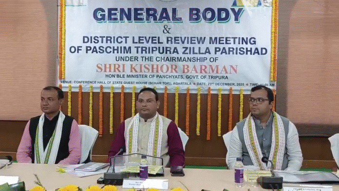 ত্রিস্তরীয় পঞ্চায়েত ব্যবস্থার মূল লক্ষ্যই হচ্ছে গ্রামীণ স্তর থেকে গ্রামীণ মানুষের আর্থ সামাজিক ক্ষেত্রের সার্বিক উন্নয়ন। আজ সোনারতরী স্টেট গেস্ট হাউসে অনুষ্ঠিত পশ্চিম ত্রিপুরা জিলা পরিষদের সাধারণ সভা ও বিভিন্ন সরকারি দপ্তরভিত্তিক উন্নয়নমূলক কর্মসূচির বাস্তবায়নের ও পরিকল্পনার পর্যালোচনা বৈঠকে পঞ্চায়েতমন্ত্রী কিশোর বর্মন একথা বলেন। তিনি জানান, নতুন নতুন পরিকল্পনা গ্রহণ করে আমাদের ত্রিস্তরীয় পঞ্চায়েত ব্যবস্থা আরও উন্নত করতে হবে। ভারত সরকার বর্তমানে স্মার্ট পঞ্চায়েত গঠনে বিশেষ গুরুত্ব দিচ্ছে। আমাদের রাজ্যেও এই স্মার্ট গ্রাম পঞ্চায়েতের উপর বিশেষ গুরুত্ব দিতে হবে। এজন্য প্রথম ধাপে ১০০টি গ্রাম পঞ্চায়েতকে স্মার্ট পঞ্চায়েতে উন্নীত করার লক্ষ্যমাত্রা নেওয়া হয়েছে। পশ্চিম জেলার গ্রাম পঞ্চায়েতগুলিকে এই স্মার্ট পঞ্চায়েতের আওতাভুক্ত করে উন্নয়নের দিকে এগিয়ে নিয়ে যাওয়া হবে। এজন্য সকলেরই সহযোগিতা প্রয়োজন। তিনি সবাইকেই স্মার্ট গ্রাম তৈরির কর্মসূচিতে শামিল হওয়ার আহ্বান জানান।