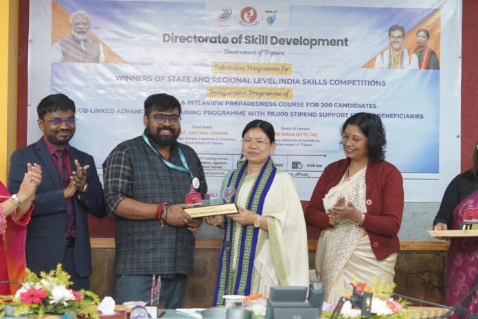 উল্লেখ্য, দক্ষতা উন্নয়ন দপ্তরের উদ্যোগে জিডিএ কোর্সে ১০০ জন প্রশিক্ষণার্থীকে ৮ মাস ব্যাপী নার্সিং-এর প্রশিক্ষণ দেওয়া হবে। তাদের প্রত্যেককে প্রতি মাসে ৮০০০ টাকা করে স্টাইপেন্ড দেওয়া হবে। সফট স্কিল এন্ড ইন্টারভিউ প্রিপেয়ার্ডনেস কোর্সে (এস এস আই পি) বিভিন্ন ডিগ্রী কলেজে পড়ুয়া ২০০ জন ছাত্র ছাত্রীকে দক্ষতা অর্জন সহ চাকরি ক্ষেত্রে ইন্টারভিউতে বসার জন্য প্রশিক্ষণ দেওয়া হবে। স্কিল ইন্ডিয়া কম্পিটিশনে ত্রিপুরা থেকে ১৬টি ট্রেডে ২৮ জন প্রতিযোগী অংশ নিয়েছিল। তিনি রাজ্য স্তরের বিভিন্ন ট্রেডে বিজয়ী মোট ৪১ জনের হাতে মেডেল ও শংসাপত্র তুলে দেন। এছাড়া তিনি টিম লিডারদেরও পুরস্কৃত করেন। অনুষ্ঠানে স্বাগত বক্তব্য রাখেন দক্ষতা উন্নয়ন দপ্তরের অধিকর্তা প্রদীপ কে। দক্ষতা উন্নয়ন দপ্তর এই অনুষ্ঠানের আয়োজন করে। ধন্যবাদ জ্ঞাপন করেন দক্ষতা উন্নয়ন দপ্তরের যুগ্ম অধিকর্তা সতীর্থা পাল।