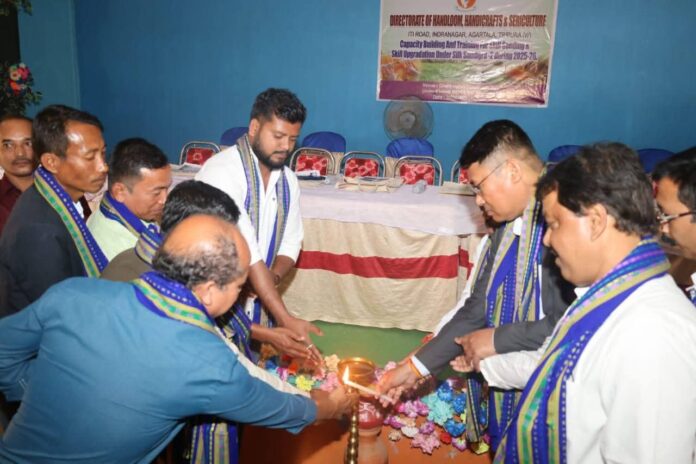 চাকমাঘাট কমিউনিটি হলে আজ থেকে শুরু হয়েছে ছয় দিনব্যাপী তাঁত ও রেশম চাষের দক্ষতা বৃদ্ধি প্রশিক্ষণ শিবির। শিবিরের আনুষ্ঠানিক উদ্বোধন করেন জনজাতি কল্যাণ দপ্তরের মন্ত্রী বিকাশ দেববর্মা। হ্যান্ডলুম, হ্যান্ডিক্রাফ্টস ও সেরিকালচার দপ্তর-এর উদ্যোগে ‘সিল্ক সমগ্র-২ (২০২৫-২৬)’ প্রকল্পের অধীনে এই কর্মসূচির আয়োজন করা হয়েছে। প্রকল্পের মূল লক্ষ্য স্থানীয় তাঁতি ও রেশম চাষিদের হাতে-কলমে প্রশিক্ষণের মাধ্যমে আত্মনির্ভর করে তোলা এবং তাঁদের আয়ের নতুন দিগন্ত উন্মোচন করা।