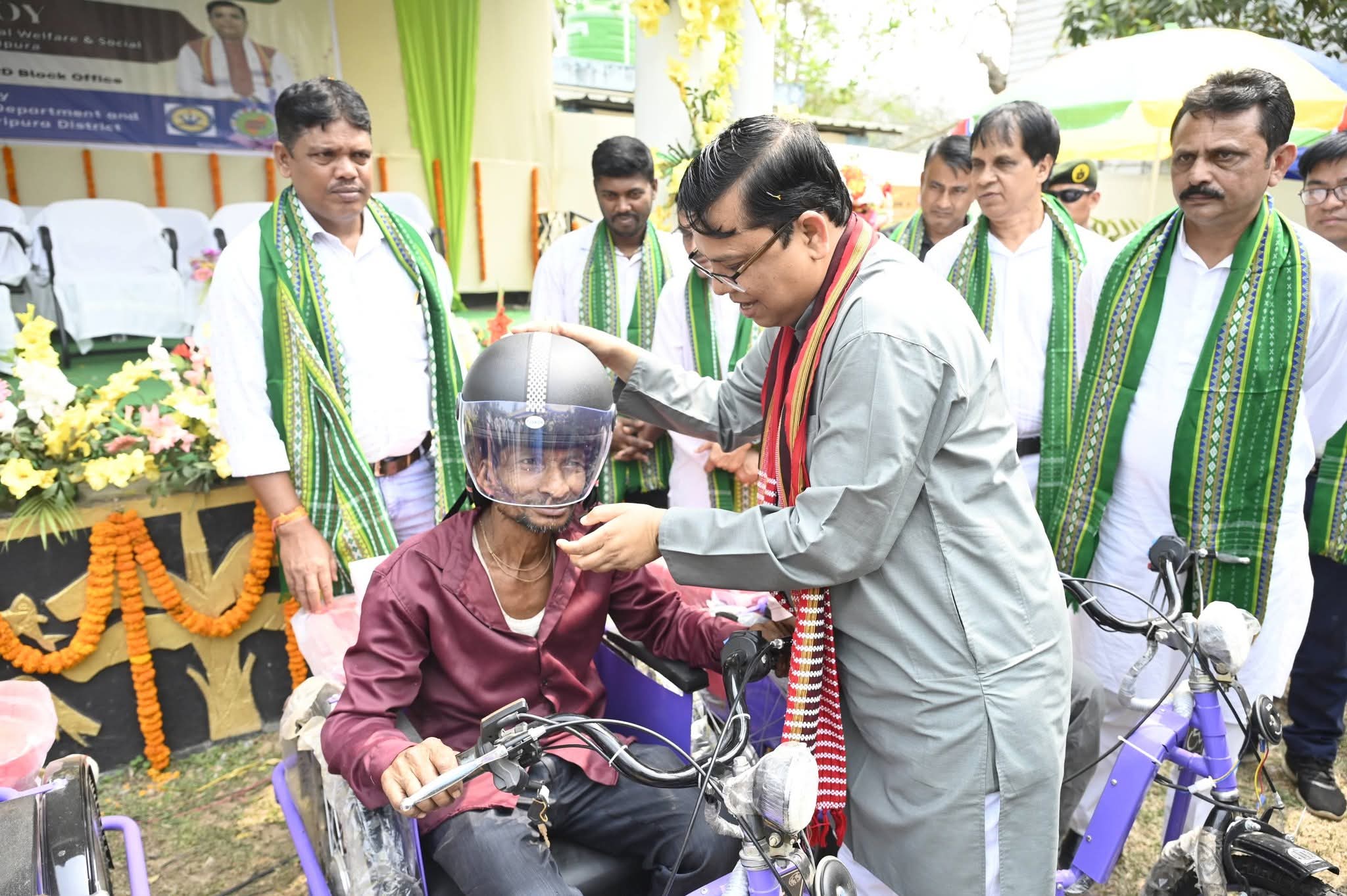 বর্তমান রাজ্য সরকার দিব্যাঙ্গজন ও কন্যা সন্তানদের প্রতি সহানুভূতিশীল। দিব্যাঙ্গজন ও কন্যা সন্তানরা যাতে সমাজের বোঝা না হন সেই লক্ষ্যে রাজ্য সরকার জনসচেতনতার পাশাপাশি বিভিন্ন জনকল্যাণমূলক কর্মসূচির বাস্তবায়ন করছে। আজ বিলোনীয়া মহকুমার ঋষ্যমুখ ব্লক প্রাঙ্গণে আয়োজিত রাজ্য সরকারের বিভিন্ন জনকল্যাণমূলক প্রকল্পের আওতাধীন সুবিধাভোগীদের সমাবেশে উদ্বোধকের ভাষণে সমাজকল্যাণ ও সমাজশিক্ষামন্ত্রী টিংকু রায় একথা বলেন। তিনি সরকারি বিভিন্ন স্কিমে সুবিধাপ্রাপ্ত ৯২৫ জন সুবিধাভোগীর হাতে ৫ হাজার ৫১টি সামগ্রী তুলে দেন। বিশেষত দিব্যাঙ্গজনদের মধ্যে চলন সামগ্রী, গ্রামীণ লোক শিল্পীদের হাতে বাদ্যযন্ত্র, খেলোয়াড়দের মধ্যে বিভিন্ন খেলাধুলার সরঞ্জাম, সামাজিক সহায়তা প্রাপ্তদের মধ্যে আর্থিক অনুদান, জনজাতিদের মধ্যে সুতা বিলি, বিভিন্ন ধর্মীয় ও সামাজিক প্রতিষ্ঠানের জন্য ১০৬টি সিনটেক্স পানীয়জলের ট্যাঙ্ক তুলে দেন সমাজকল্যাণমন্ত্রী। এছাড়াও তিনি পোল্ট্রি পালন, শূকর পালন, ছাগল পালন ইত্যাদি স্কিমের সুবিধাভোগীদের মধ্যে আর্থিক অনুদানের চেক প্রদান করেন। বিভিন্ন জনকল্যাণমূলক স্কিমে আজ মোট ১ কোটি ১ লক্ষ ৬৭ হাজার ৪৭০ টাকার বিভিন্ন সামগ্রী বিতরণ করা হয়।