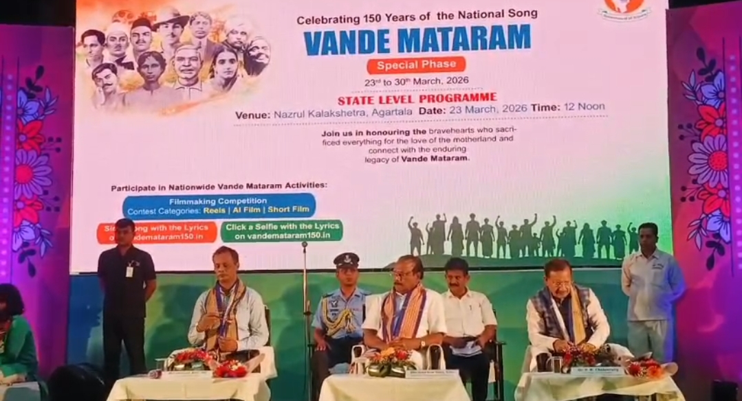 ‘বন্দে মাতরম’ এর ১৫০ বছরের গৌরবময় অধ্যায়কে স্মরণীয় করে রাখতে ভারত সরকার চারটি পর্যায়ে বর্ষব্যাপী বিভিন্ন কর্মসূচির মাধ্যমে তা উদযাপন করার সিদ্ধান্ত গ্রহণ করে। এরমধ্যে প্রথম পর্যায়ে ৭ থেকে ১৪ নভেম্বর, ২০২৫, দ্বিতীয় পর্যায়ে ১৯ থেকে ২৬ জানুয়ারি, ২০২৬ (প্রজাতন্ত্র দিবস সংলগ্ন সময়ে), তৃতীয় পর্যায়ে ৭ থেকে ১৫ আগস্ট, ২০২৬ (‘হর ঘর তিরঙ্গা’ কর্মসূচির সাথে) এবং চতুর্থ পর্যায়ে ১ থেকে ৭ নভেম্বর, ২০২৬ এই কর্মসূচি উদযাপনের সিদ্ধান্ত নেওয়া হয়। সারা দেশের সাথে আমাদের রাজ্যেও ব্যাপক জনঅংশগ্রহণের মাধ্যমে বিশেষ করে ছাত্রছাত্রীদের অংশগ্রহণে অত্যন্ত সাফল্যের সঙ্গে প্রথম ও দ্বিতীয় পর্যায়ের কর্মসূচি উদযাপিত হয়েছে। ‘বন্দে মাতরম’-এর ১৫০ বছর উদযাপনের বর্ষব্যাপী বিভিন্ন কর্মসূচিরই এক অন্যতম অঙ্গ হল আজকের এই অনুষ্ঠান। যা ২৩ থেকে ৩০ মার্চ, ২০২৬ পর্যন্ত একটি বিশেষ পর্যায় হিসেবে উদযাপন করা হবে। অনুষ্ঠানে এছাড়াও উপস্থিত ছিলেন প্রধান সচিব চৈতন্যমূর্তি, তথ্য ও সংস্কৃতি দপ্তরের অধিকর্তা বিম্বিসার ভট্টাচার্য সহ অন্যান্য বিশিষ্টজন।