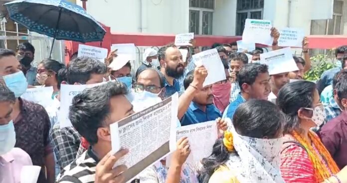 একসাথে নিয়োগের দাবিতে অর্থমন্ত্রীর বাসভবনের সামনে টেট-২ উত্তীর্ণদের বিক্ষোভ