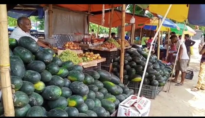 গ্রীষ্মের তপ্ত গরমের রসালো ফল তরমুজ। গরমের রসালো ফল তরমুজের তেলিয়ামুড়া বাজারে ব্যাপক পরিমাণে লক্ষ্য করা গেলেও তেলিয়ামুড়া বাজারে তরমুজের চাহিদা ক্রেতাদের মধ্যে সেরকম লক্ষ্য করা যাচ্ছে না। ফলে মাথায় হাত তেলিয়ামুড়া বাজারের তরমুজ বিক্রেতাদের মধ্যে। এই বছর তরমুজের ব্যাপক যোগান হয়েছে বলে জানান একজন বিক্রেতা। তার পাশাপাশি তিনি আরো জানান এই বছর তেলিয়ামুড়া বাজারে ক্রেতাদের মধ্যে তরমুজের সেরকম চাহিদা নেই ফলে প্রায় প্রতিনিয়ত ক্ষতির সম্মুখীন। তবে গত বছরের তুলনায় এই বছর তরমুজের চাহিদা অনেকটাই হ্রাস পেয়েছে বাজারে। অন্যদিকে দোকানিরা তরমুজের দোকান সাজিয়ে রাখলেও ক্রেতার দেখা মিলছে না। এর কারণে তরমুজ চাষী থেকে শুরু করে ব্যবসায়ীদের মাথায় হাত। এবং চরম সমস্যার সম্মুখীন হতে হচ্ছে প্রতিনিয়ত। বর্তমান পরিস্থিতিতে দাঁড়িয়ে তেলিয়ামুড়া বাজারে তরমুজ ৪০ থেকে ৫০ টাকা প্রতি কেজি দরে বিক্রি হচ্ছে। মূলত গত বছর থেকে এই বছর অনেক কম দামে বিক্রি হচ্ছে বলে দাবি তরমুজ বিক্রেতাদের। এই গরমকালে একটি প্রধান রসালো ফল হিসেবে পরিচিত এই তরমুজ। প্রতিবছর এই সময় রাজ্যের বিভিন্ন বাজারগুলিতে তরমুজের চাহিদা প্রচন্ড পরিমানে লক্ষ্য করা যায়। কিন্তু এই বছর একটি ব্যতিক্রমী চিত্র ধরা পড়লো তেলিয়ামুড়া বাজার এলাকায়। ফলে তরমুজ ব্যবসায়ীরা এবছর তরমুজ বিক্রির করে লাভবান হতে পারবে না বলে ব্যবসায়ীদের অভিমত।।