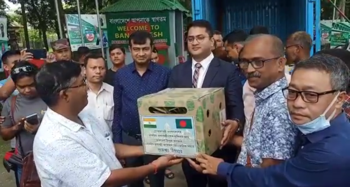 বৃহস্পতিবার ভারতের ত্রিপুরা সরকারের তরফ থেকে বাংলাদেশের প্রধানমন্ত্রী শেখ হাসিনাকে শুভেচ্ছা স্বরূপ ১০০ কাটুনে ৬০০ পিস আনারস পাঠানো হয়েছে আখাউড়া চেকপোস্ট দিয়ে। এদিন দপ্তরের আধিকারীরকরা হটিকালচারের মাধ্যমে আখাউড়া চেকপোষ্টে বাংলাদেশের আধিকারিকদের হাতে কুইন জাতীয় আনারস