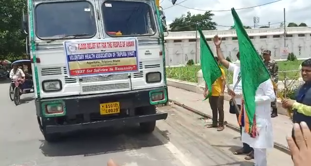 শুক্রবার ভলেন্টারি হেলথ এসোসিয়েশন অফ ত্রিপুরার পক্ষ থেকে আসামে বন্যায় ক্ষতিগ্রস্তদের জন্য ত্রাণ সামগ্রী প্রেরন কর্মসূচির আয়োজন করা হয়। এদিন উজ্জয়ন্ত প্যালেসের সামনে থেকে বন্যায় ক্ষতিগ্রস্তদের জন্য ত্রান সামগ্রী প্রেরন করা হয়। এদিনের কর্মসূচীতে উপস্থিত ছিলেন পুর নিগমের মেয়র দীপক মজুমদার। এদিন সংবাদমাধ্যমের মুখোমুখি হয়ে মেয়র বলেন বন্যায় ক্ষতিগ্রস্তদের পাশে দাঁড়ানোর লক্ষ্যে এগিয়ে এসেছে অনেক সামাজিক সংস্থা ব্যক্তি এবং সরকার, তাছাড ভলান্টিয়ারি হেলথ অ্যাসোসিয়েশনের এই উদ্যোগকে সাধুবাদ জানান।